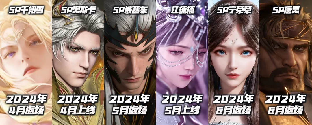 然后在2024年的三周年庆之间,官方也是连续的返场了SP宁荣荣和SP唐昊,毕竟之前这SP奥斯卡和SSR+江楠楠那拉胯的表现的确是给游戏拖了不小的后腿,所以2024年的6月份也是颇为热闹,不过随着SP唐昊的返场,他也即将迎来儿子的全面背刺。
