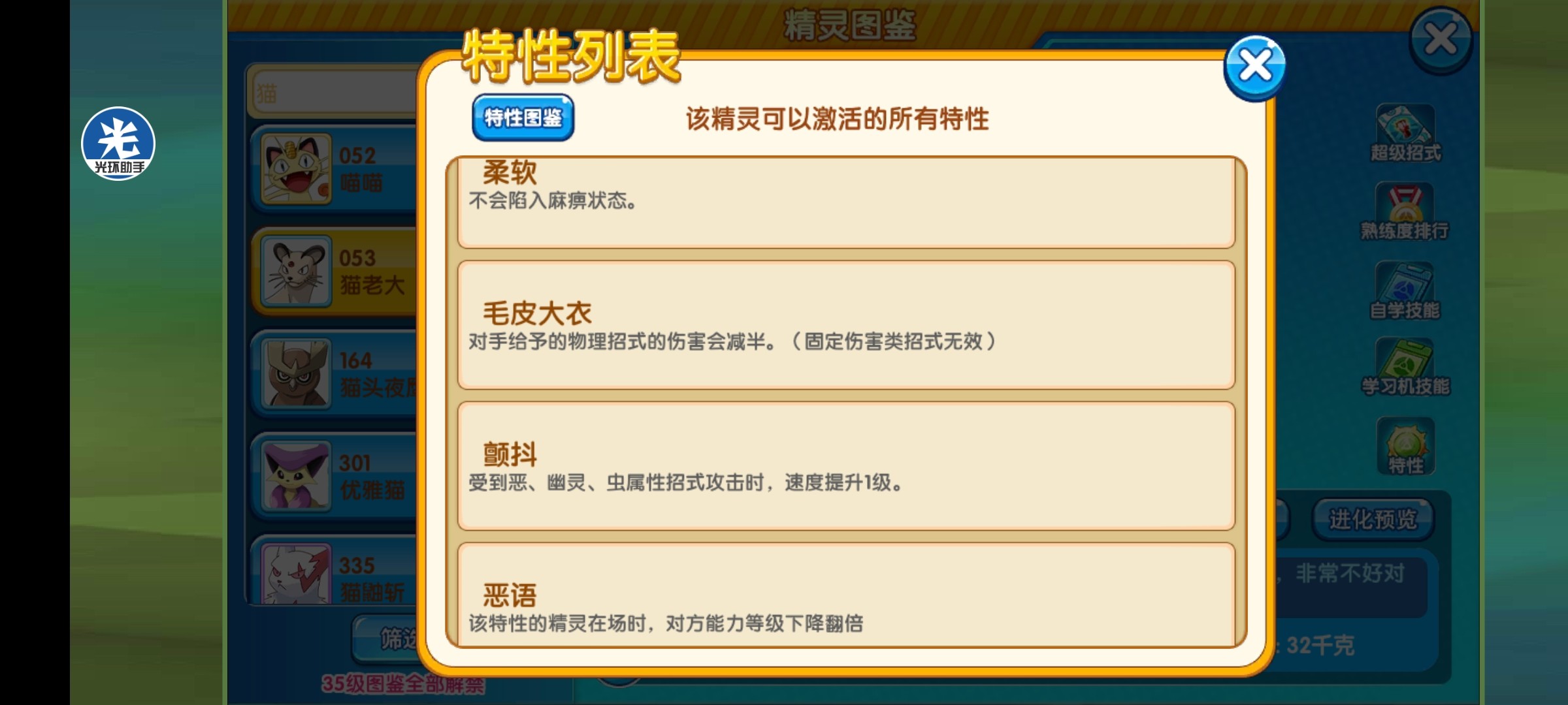 特性四个,其中毛皮大衣和恶语都不错,不过两种玩法不同,毛皮大衣的配置,就是把它向特殊的物盾方向培养,参考闪光灾兽。而恶语却是个强大的状态特性,配合特殊的技能,可以让对手状态加速下降,通过削弱对手来获得优势地位。