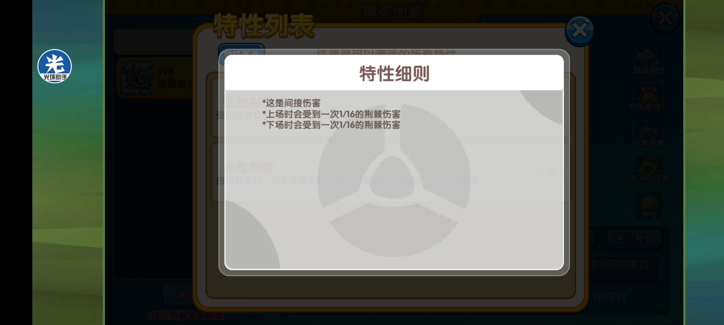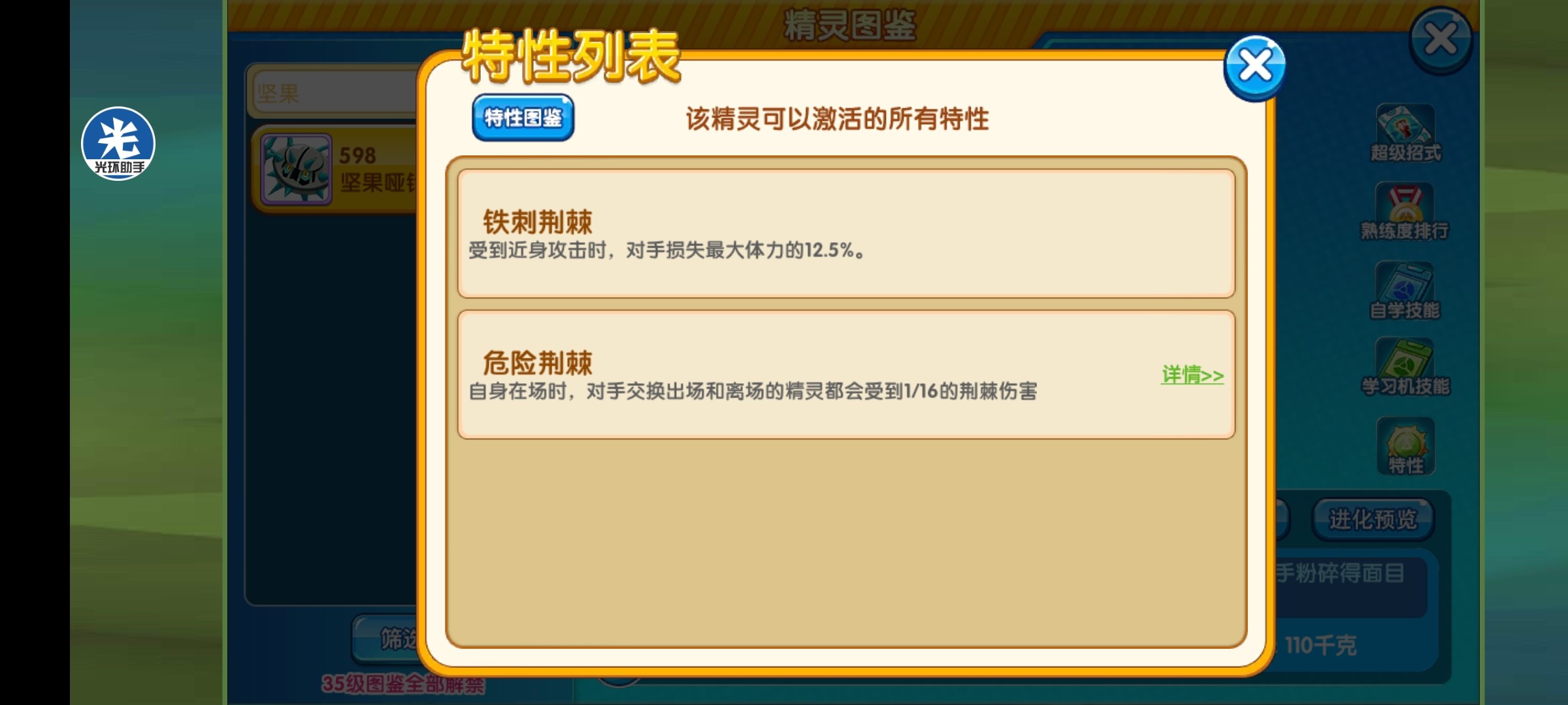 特性有两个,一个是原来的铁刺,相当于反甲效果,如果对手是物攻手,那绝大多数攻击不敢随意使用。毕竟打一下自身就要损失血量。