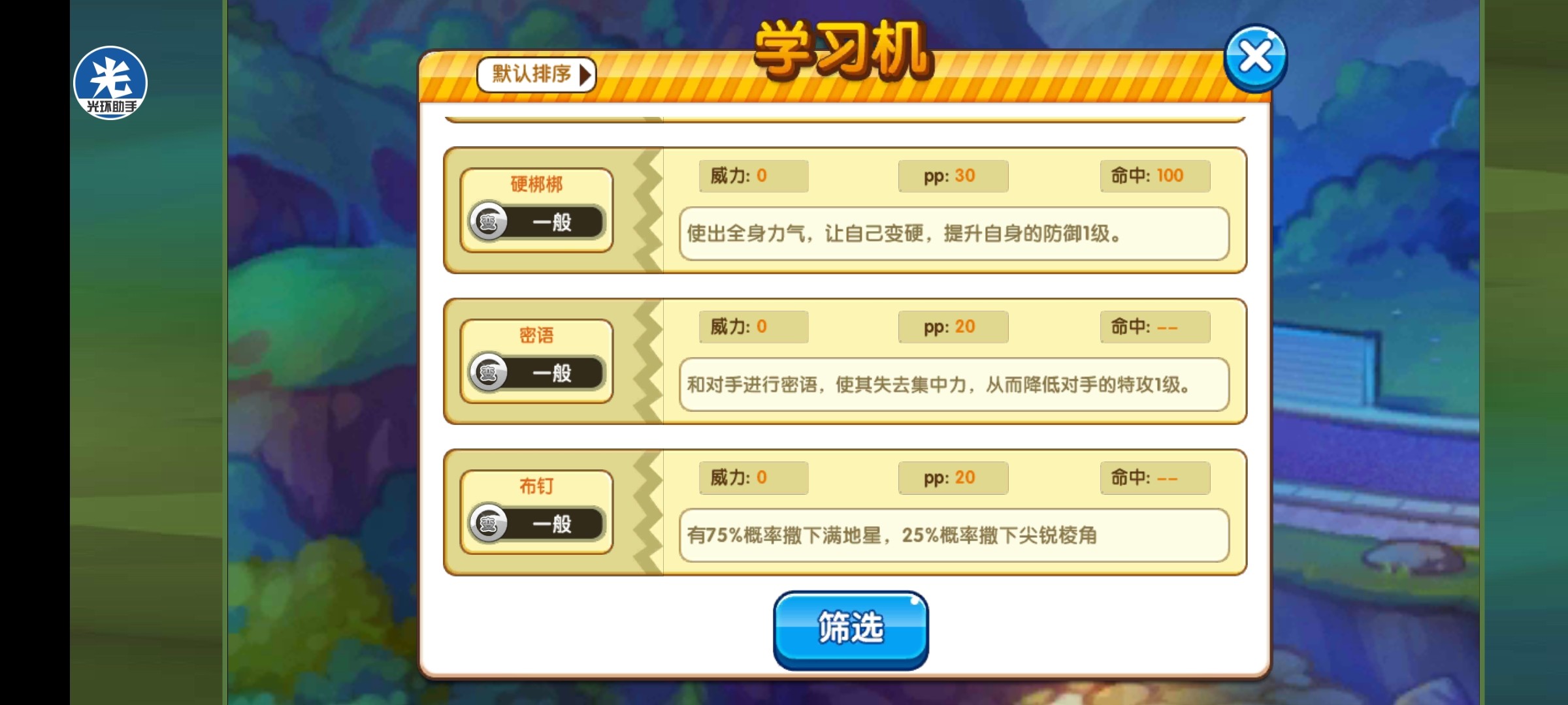 光炮/镜光反射/岩钉/寄生种子+猛毒/电磁波/咒语+烦恼种子/满地星/钢钉/针刺防御/布钉+金属再生/睡觉