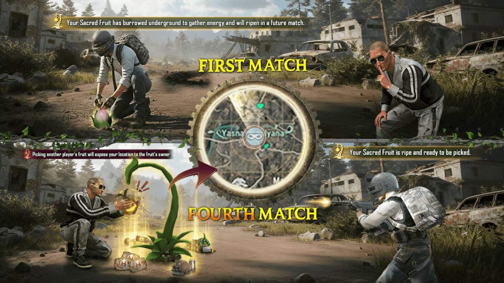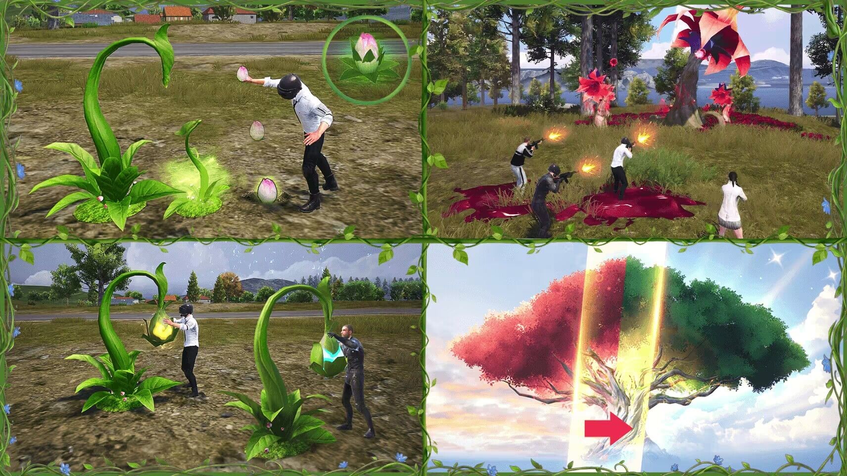 ●玩法说明:在地图中前往伊斯塔尔门,进入原初树心副本,争夺稀有道具树灵之眼。持有树灵之眼后,可在Erangel开启上帝视角,并施放多种树灵技能以掌控战局:护罩、传送门、治疗、毒沼花。
