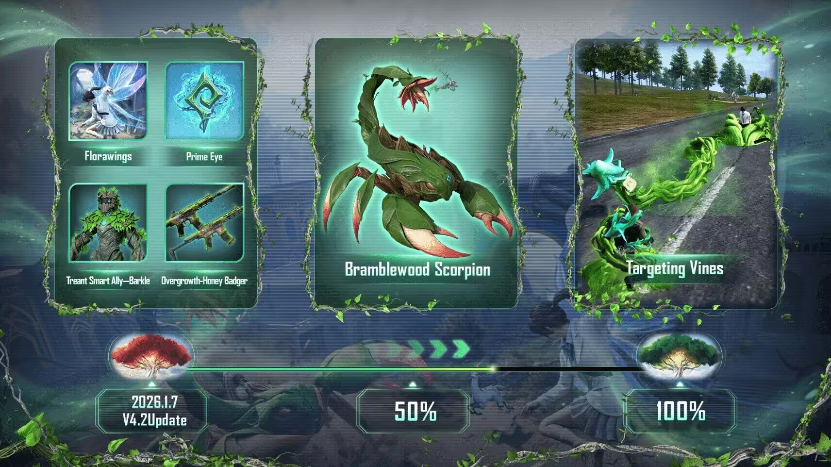 更多精彩内容持续揭晓!请追踪官方公告获得最新资讯,与树人伙伴Barkle一起探索Erangel的全新面貌,净化被感染的植物,让战场重新焕发生机!感谢大家一直以来的支持与厚爱!如对新版本有任何意见,欢迎随时联络我们,期待与你携手共创更精彩的战场体验!