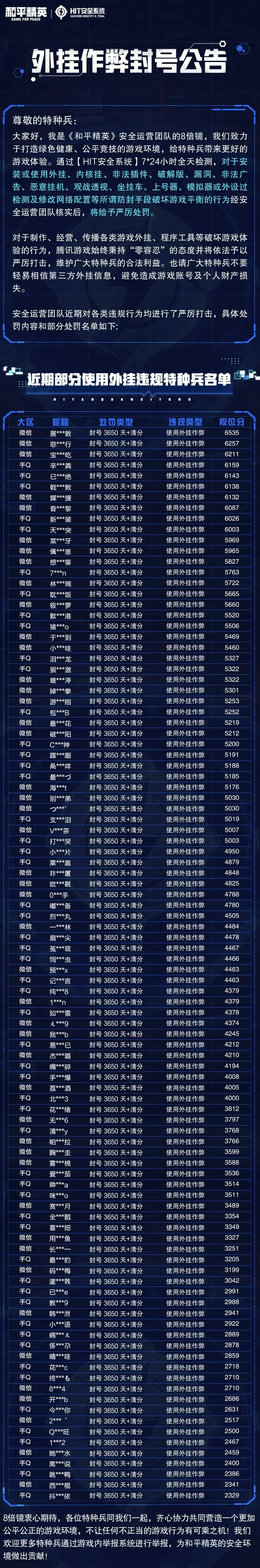 外挂作弊封号公告(1月12日)