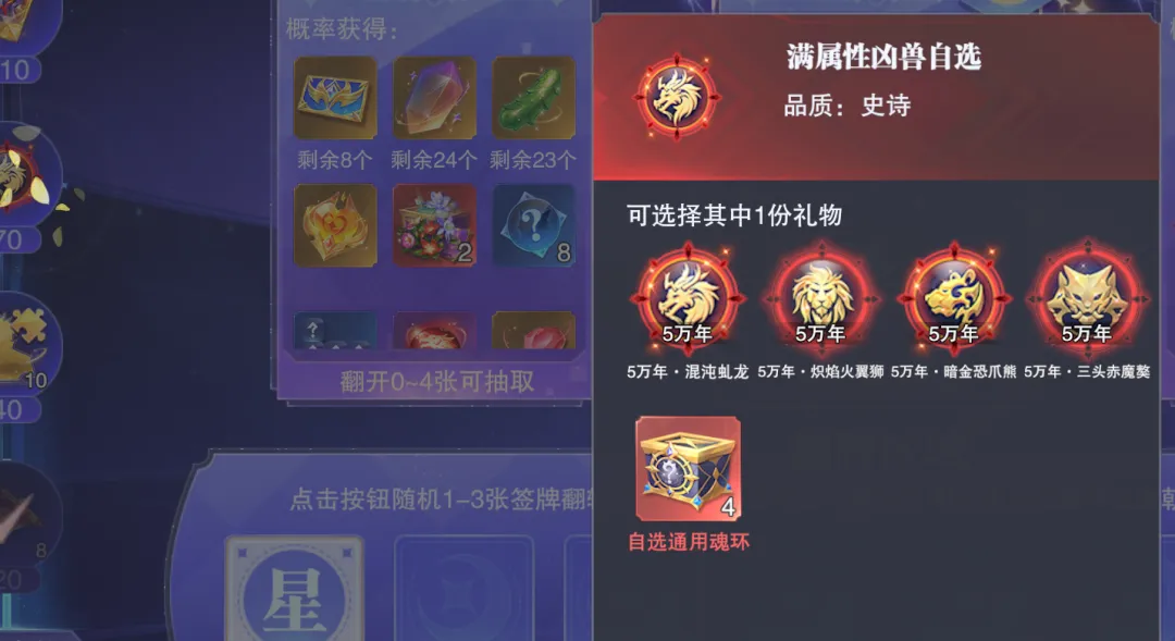 那么此次活动最大的意义对于普通玩家而言,就是可以适当的补一补凶兽魂环了,这波上线的凶兽魂环自选可以选到混沌虬龙、炽焰火翼狮、暗金恐爪熊和三头赤魔獒,其中除了混沌虬龙之外另外三个可以算是远古时期的强敏攻凶兽魂环了,当然混沌虬龙嘛虽然稍微晚一点出,但对于现在这个时间段也不傻稀罕玩意了,而且这些魂环还都可以完成合成和凶兽异化,而且异化这个道具也已经上线了很长时间了,所以大家按需考量即可。