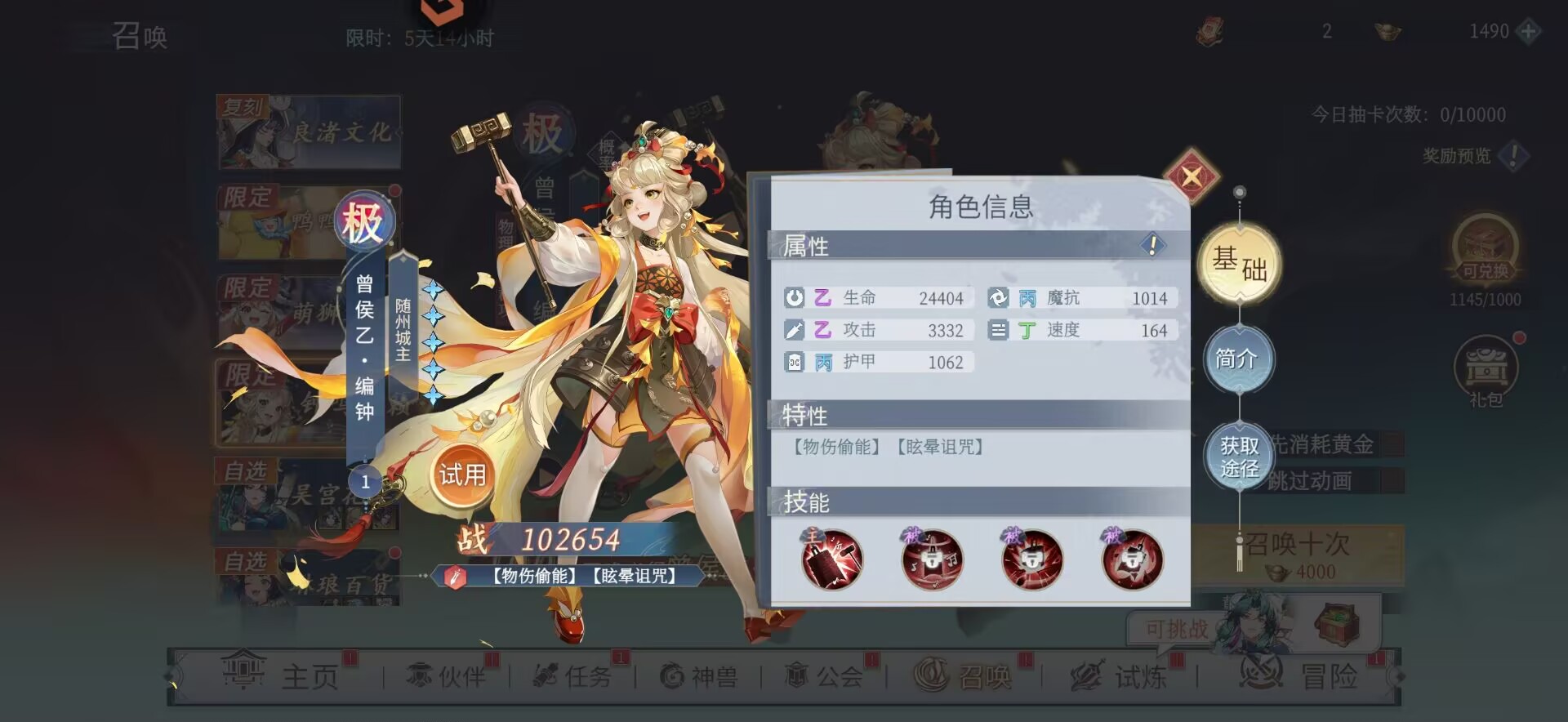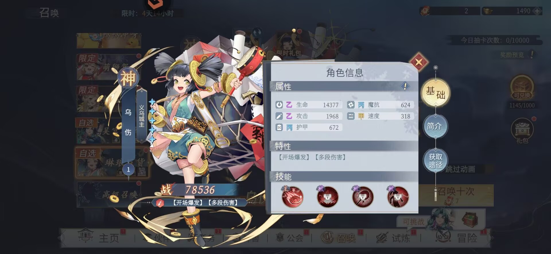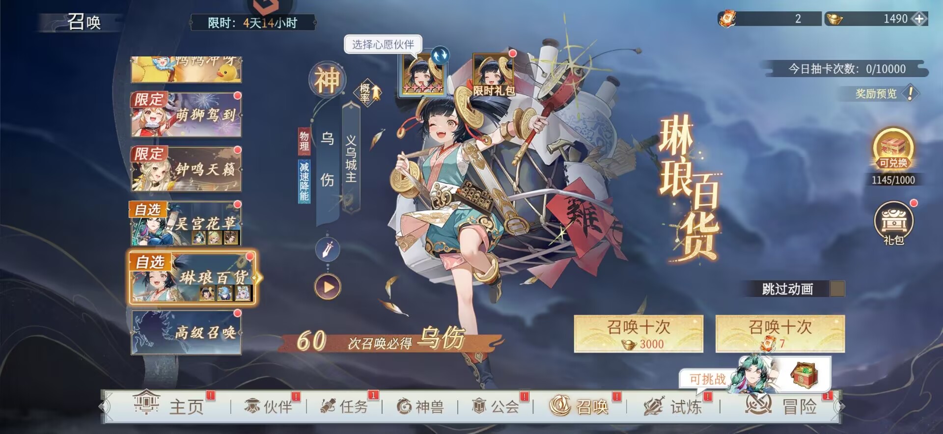 至于【乌伤】可以从普池和自选中慢慢兑换即可,或者后面再来抽。