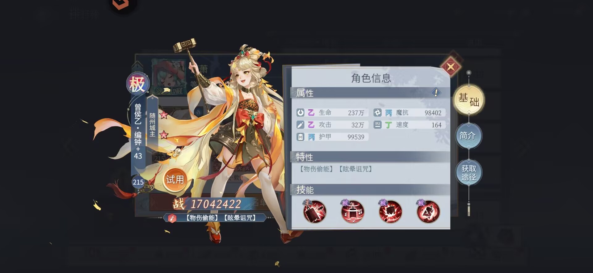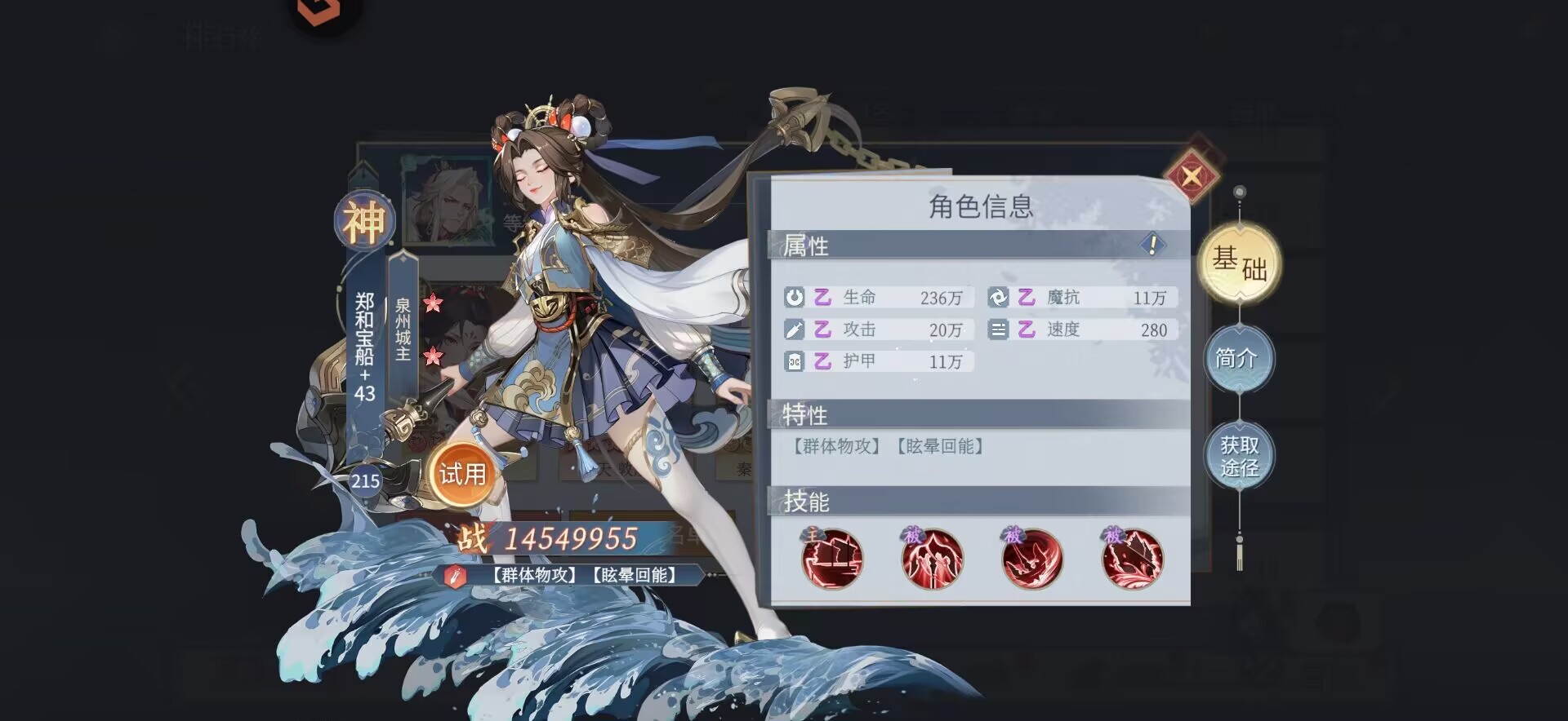 也是非常推荐大家去优先培养的一个角色,可以作为阵容主c培养