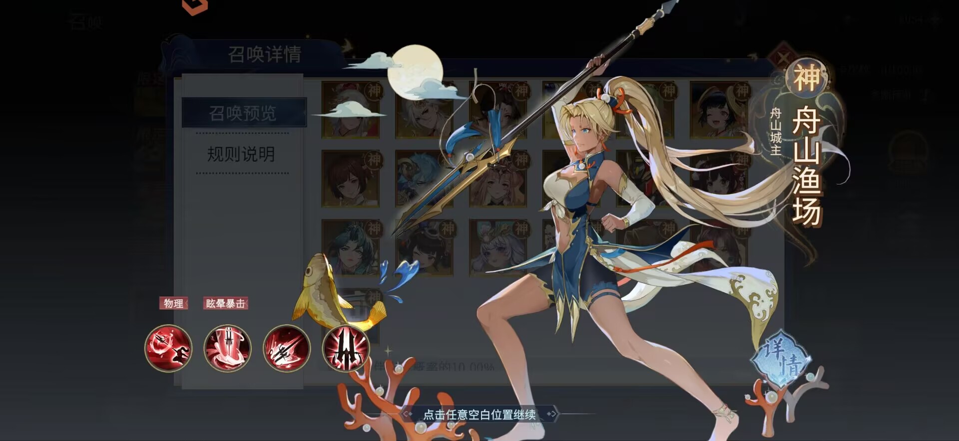 解析:舟山渔场的特点在于单体伤害高,而且自身带有高眩晕,攻击眩晕目标可以提升暴击率缺点是:速度很慢,而且功能性比较单一,没有团队增益、没有穿透、没有真伤等手段。