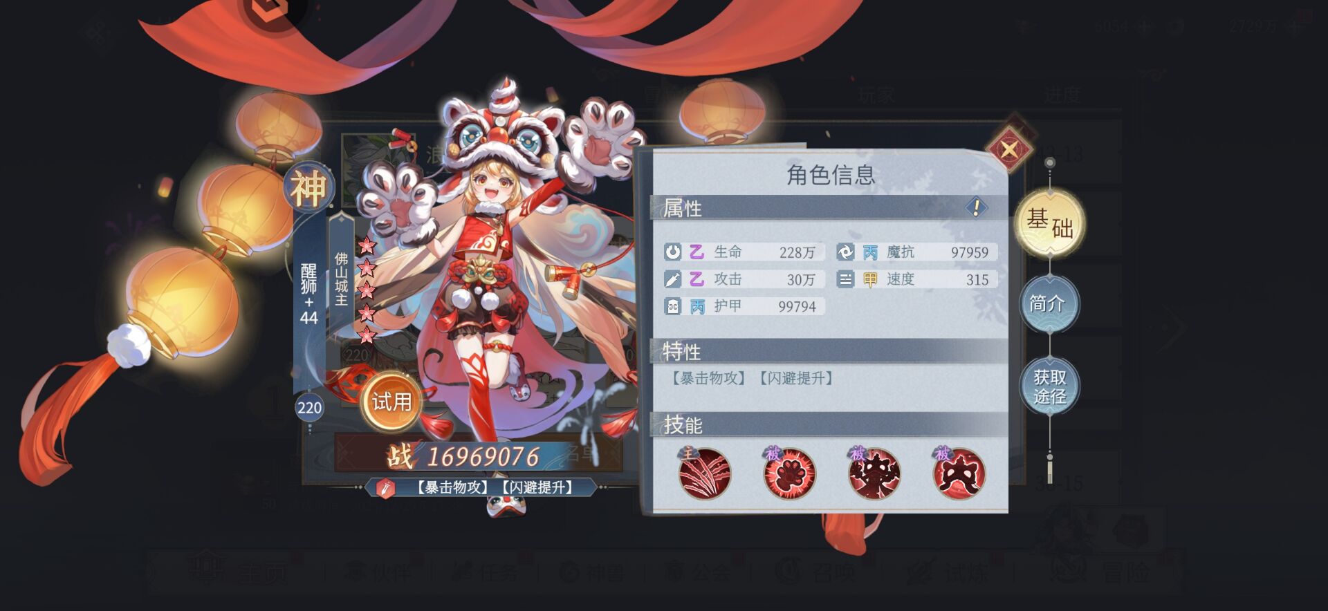 如果你的队伍缺乏单体输出,那么醒狮也是不错的选择。
