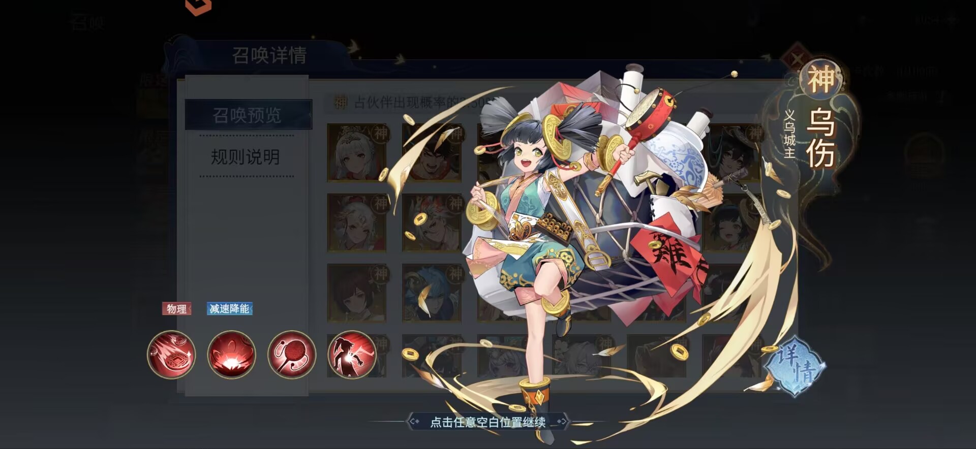 主要作用就是给队友提升增益,开局可以提升全体队友的速度和攻击力以及能量。
