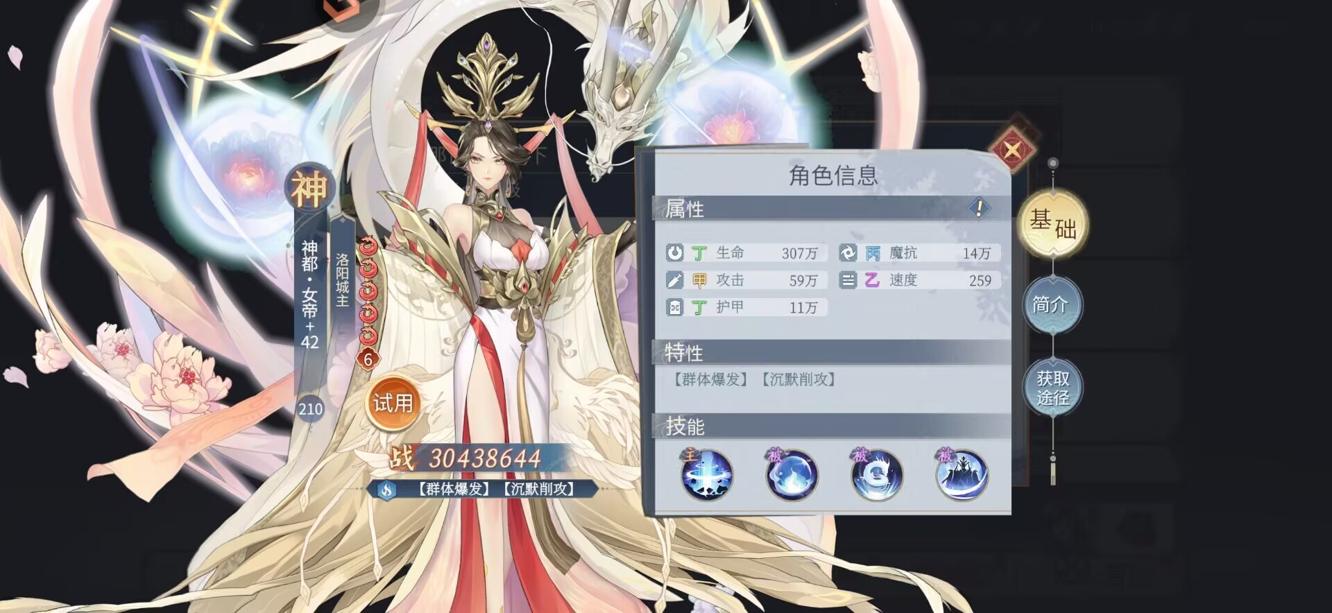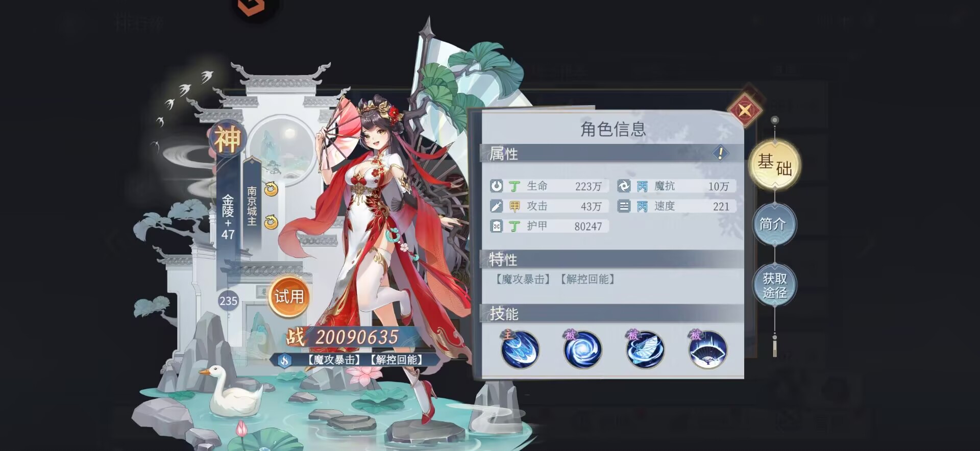 作为一个法c爆发伤害比不了金陵、凤凰、芙蓉所以综合强度狮子只能给它排第二。