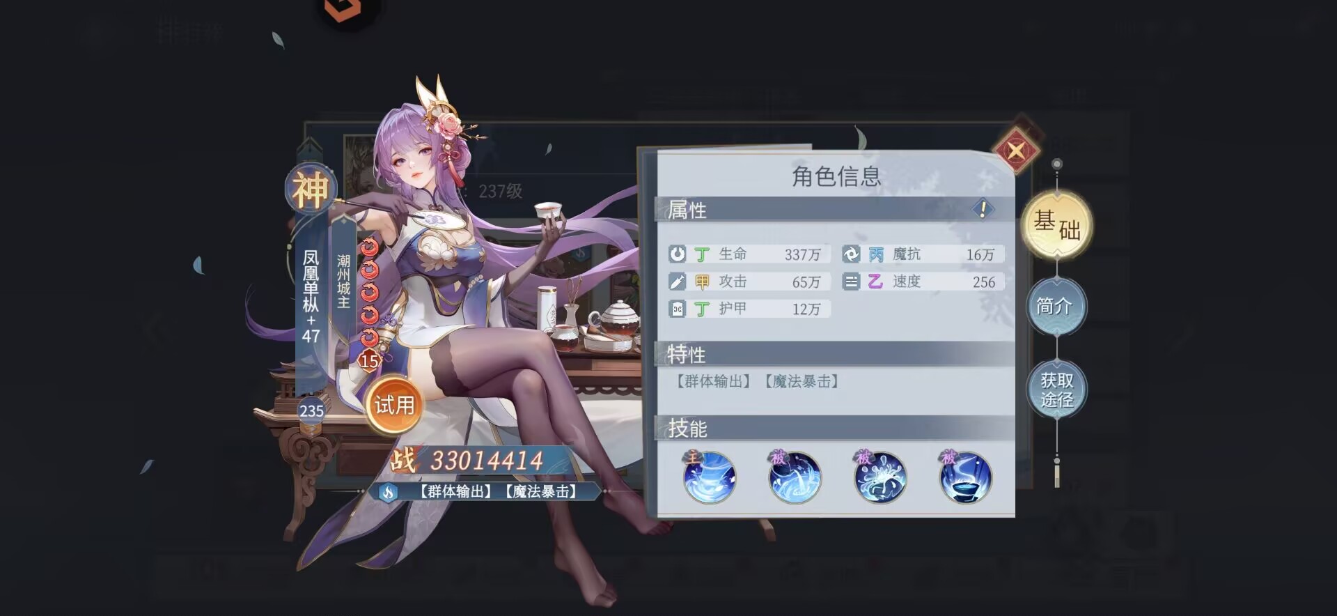解析:凤凰单枞的机制非常简单粗暴,一句话总结就是:伤害高、暴击高、增伤强、还有控制。而且攻高速度也比较高,只从输出能力来看是无可挑剔的。