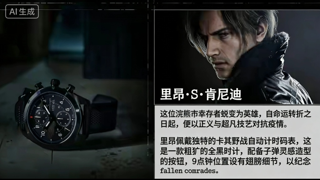 更有趣的是,汉密尔顿官网特别提到,里昂的腕表在“9 点钟位置”刻有翅膀图案,用以纪念阵亡战友。这一细节也让玩家猜测,里昂或许将在本作中失去一两位重要的伙伴。