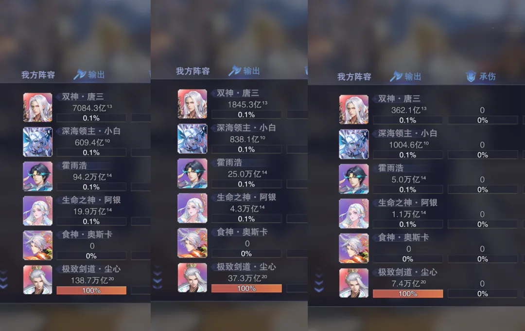 首先大家需要知晓,系统直接预设的这个长图卡组是比较坑爹的......因为上了SP+宁荣荣之后我们的辅助就无法放技能了,相当于直接废掉一个辅助的功能,虽然说这样也可以让SP+宁荣荣提供更高的增伤,但大家还是得结合自身账号的实际情况来做搭配 那么还有一点大家需要知晓的便是,系统预设的这个长图卡组也并非是SP+宁荣荣最高效的卡组搭配,后续维一会尽量实测挑选一个相对最优卡组搭配给到大家 接着对于彩5星SP小白这个位置而言,SP+宁荣荣在彩色1星的前提下就可以轻松胜过了,甚至针对彩5星SP拓跋云而言,SP+宁荣荣的增伤表现也可以在彩色1星下搭配合适的卡组后稍显胜出......所以基本上SP+宁荣荣在防辅系内部目前就是第一增伤了 但是如果大家因为自己的账号原因还在使用三控两辅的阵容(不上SP小白),此时一般而言我们会有两种选择,这个得根据大家自身的账号特点来考虑,第一是用SP+宁荣荣直接替换SP拓跋云,第二则是用SP+宁荣荣替换SP霍雨浩改为两控三辅阵容(留下SP李慕婉和SP雪帝两个控制),不过到底哪一个替换之后的伤害会更高,这得根据大家自身的魂师及售后练度来对比衡量了,目前实测和收集的反馈是两种情况都有(维一自己的号是替代SP拓跋云后伤害更高)