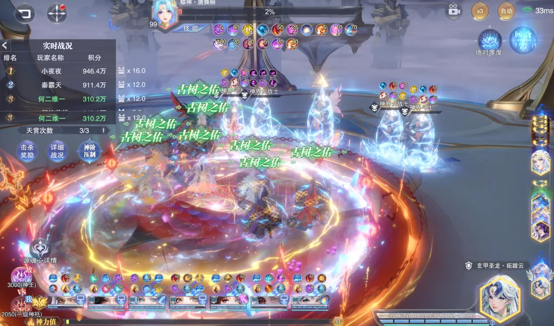 首先在短图方面,例如我们打0回合的伤害,这里维一用常规的SP小白阵容来打了打,伤害量大概在10万亿²⁰-100万亿²⁰左右。