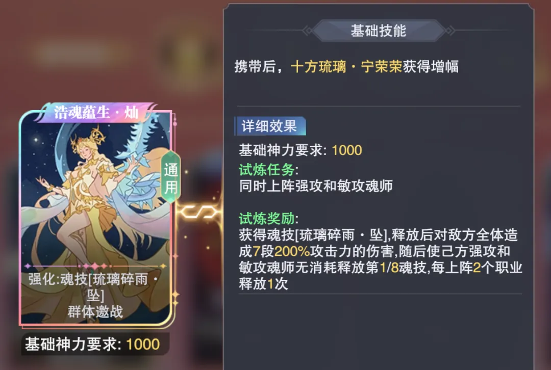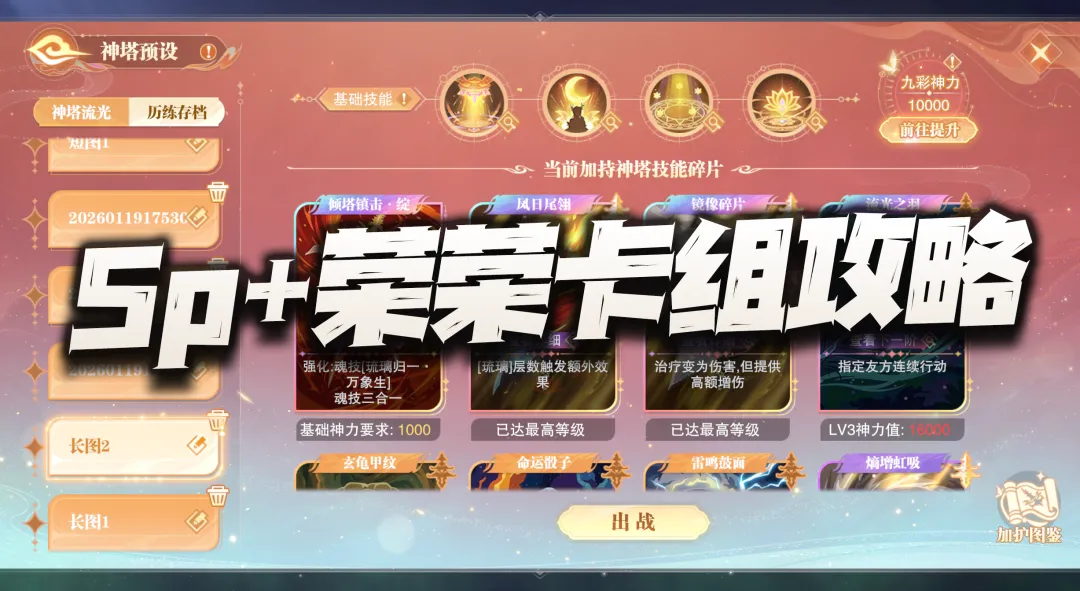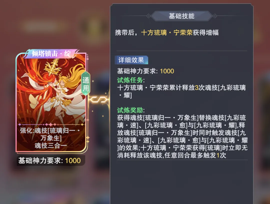 接着我们长图一般可以首选“倾塔镇击·绽”这个方向,而选择这个方向后大家需要注意,我们在战斗开始需要锁【九彩琉璃·耀】这个4技能,然后4技能放了3次后,SP+宁荣荣便会多出下图中的这个技能: