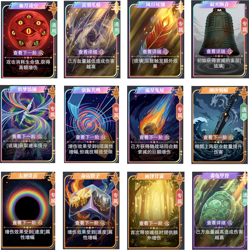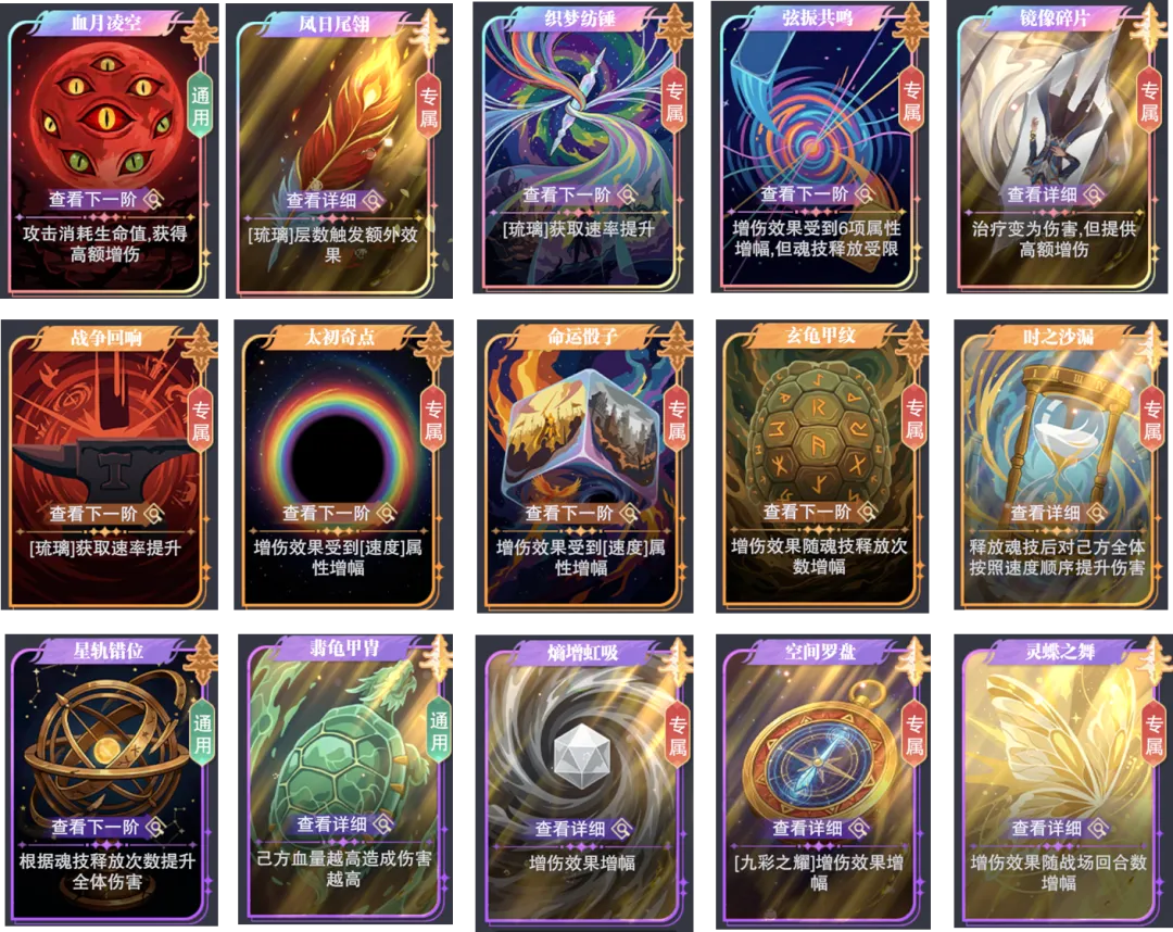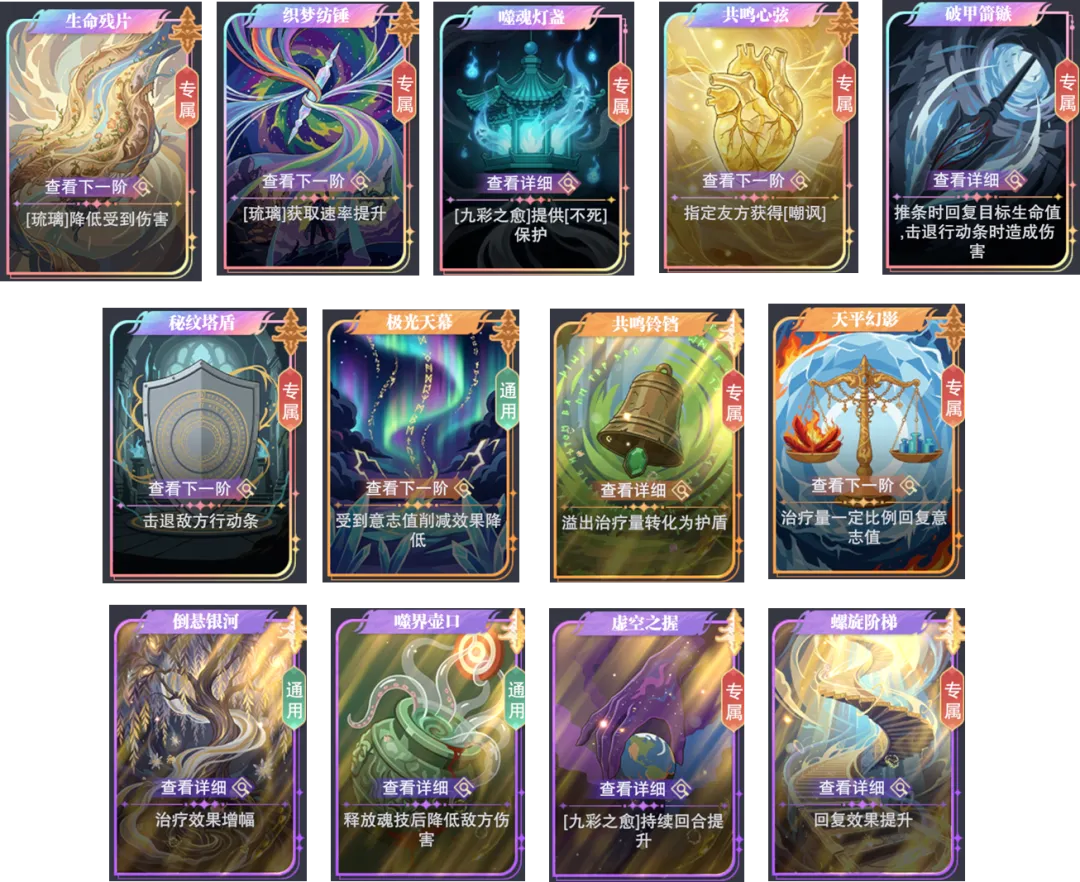 • “弦振共鸣”:这张卡牌会让我们其他的“辅助”魂师无法行动,所以大家需要视自己的阵容情况来做取舍,例如这张牌所带来的增伤收益如果比其他辅助不动时还要高,那么就可以选,如果其他魂师不动时的伤害更低,则不要选