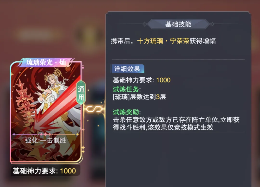 最后是PVP战斗的卡组分析,这里维一个人更喜欢选择“琉璃荣光·灿”这个方向,当然因为大家的账号情况和战斗环境变化,其余的开启领域和直接爆发输出两个方向大家也可以根据自身的实际情况来做考量。