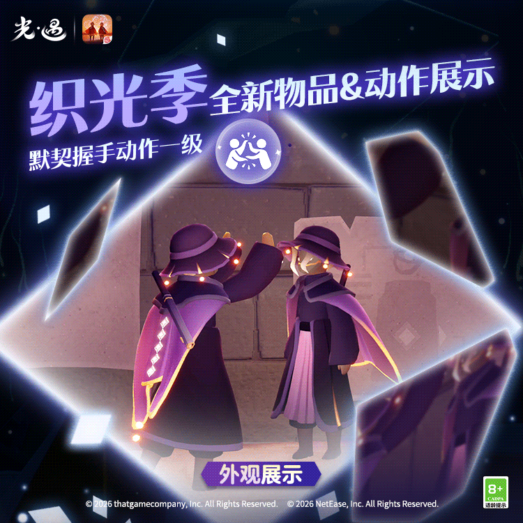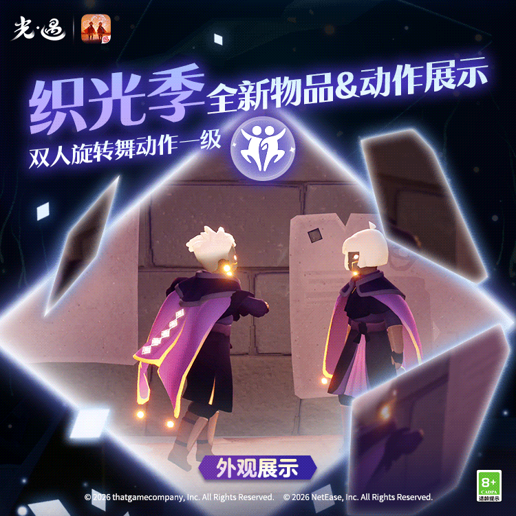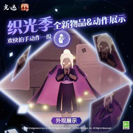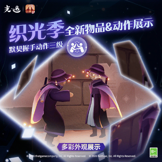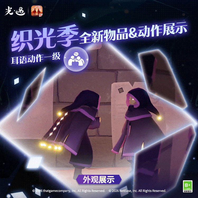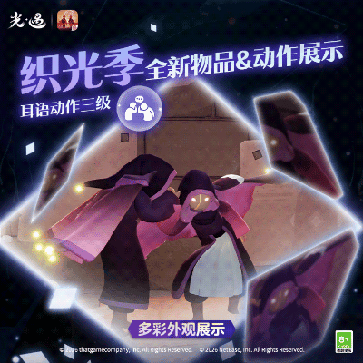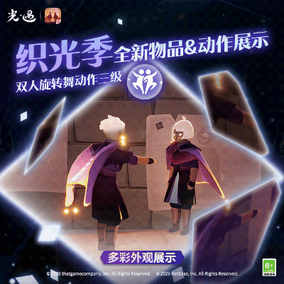 王国特刊丨换上新装,与友一起织光!是泽哦发布于 01-21关注流光斗篷揽尽辉光流转黑袍紫衬凝聚小队星光默契拍手集齐散落碎片双人旋舞共贺灯笼长明✨《光·遇》奇妙之旅:织光季将于1月23日维护后正式开启换上织光小队的全新服饰用色彩点缀你的个性穿搭与好友耳语交谈默契互握协作共织让灯笼再现回忆吧!