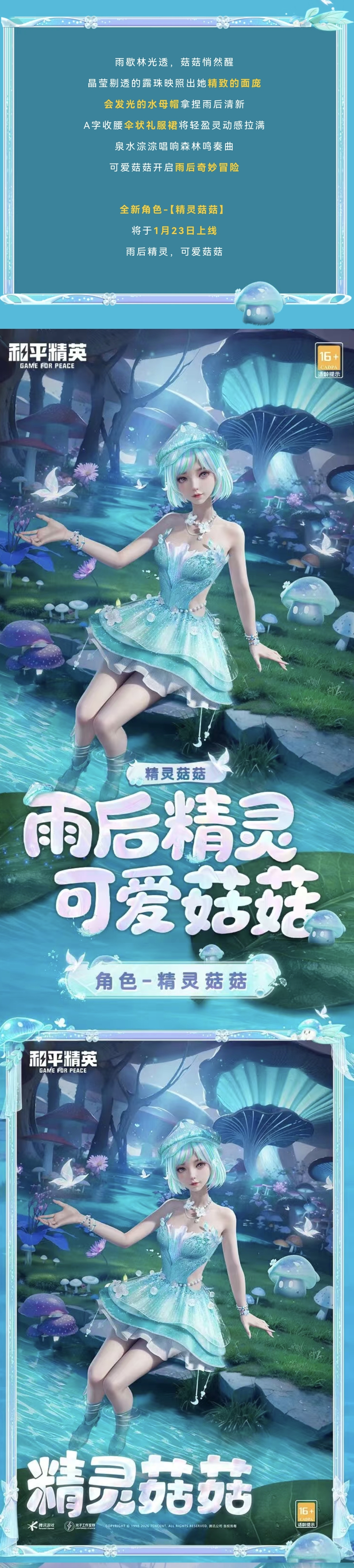 新皮肤爆料 | 雨后精灵,可爱菇菇!全新角色-【精灵菇菇】将于1月23日正式上线~