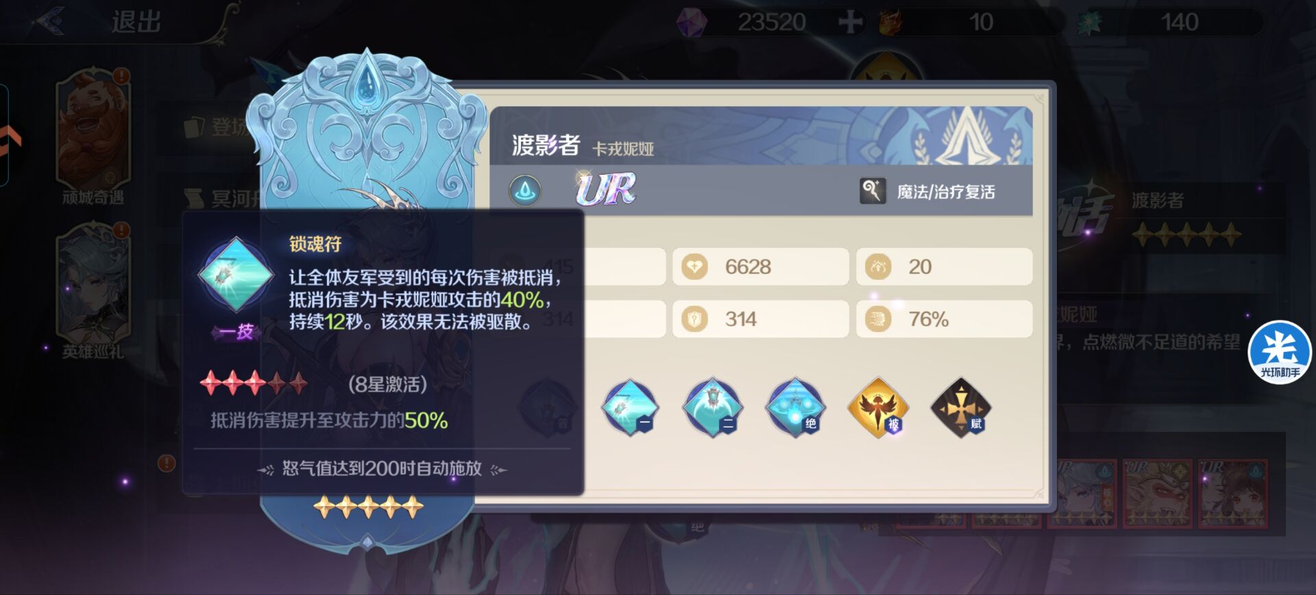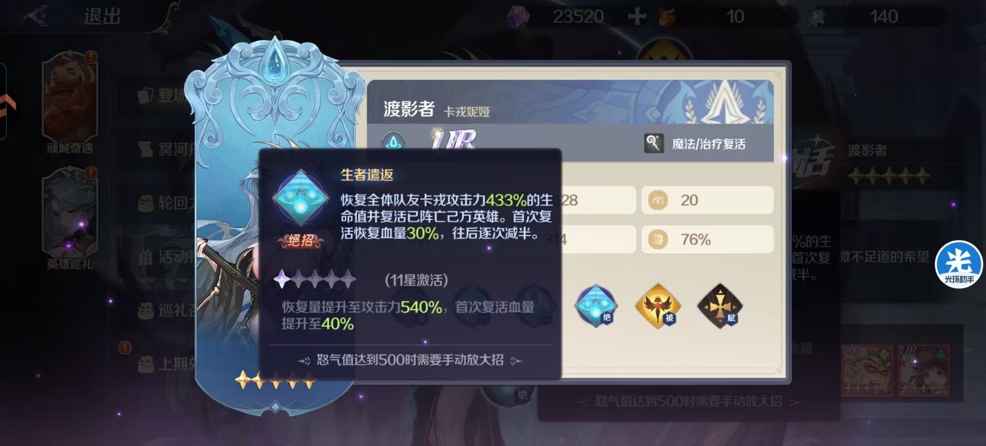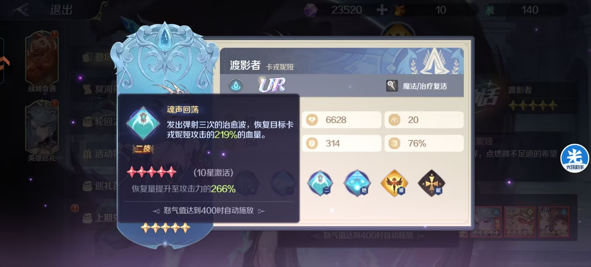 卡戎妮娅三技能除了全体治疗奶量高以外,核心就是:复活。