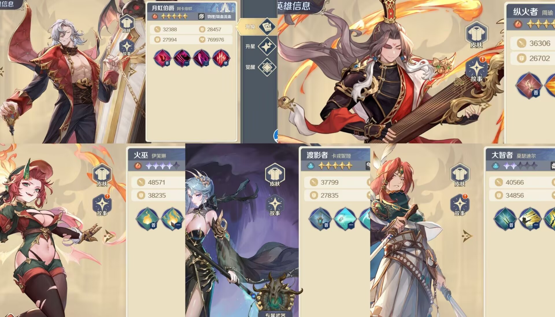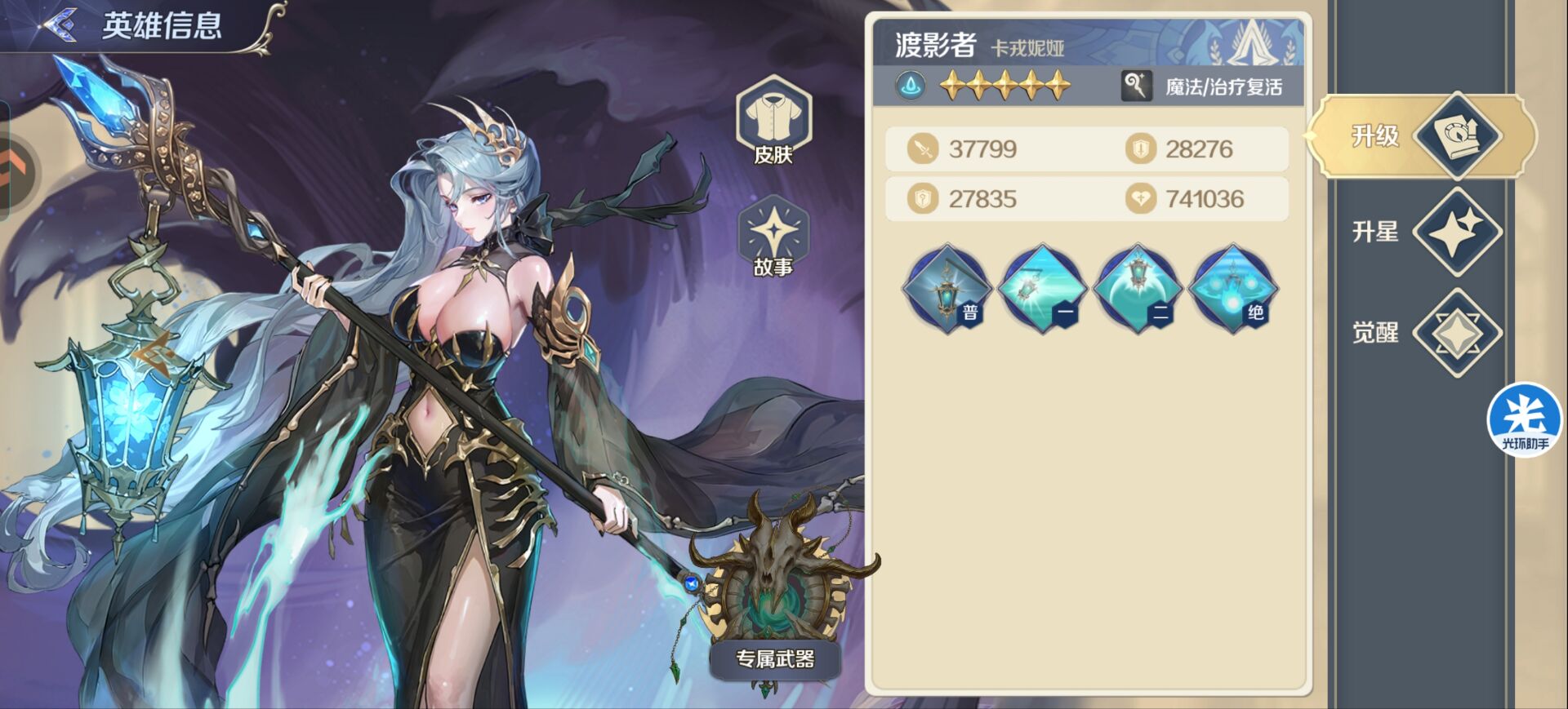 月虹伯爵:能抗又能打,自带复活甲的角色,同时高吸血配合卡戎妮娅的治疗续航能力很强,能够很好的保护后排自身也有致盲控制效果,可以扰乱战场。
