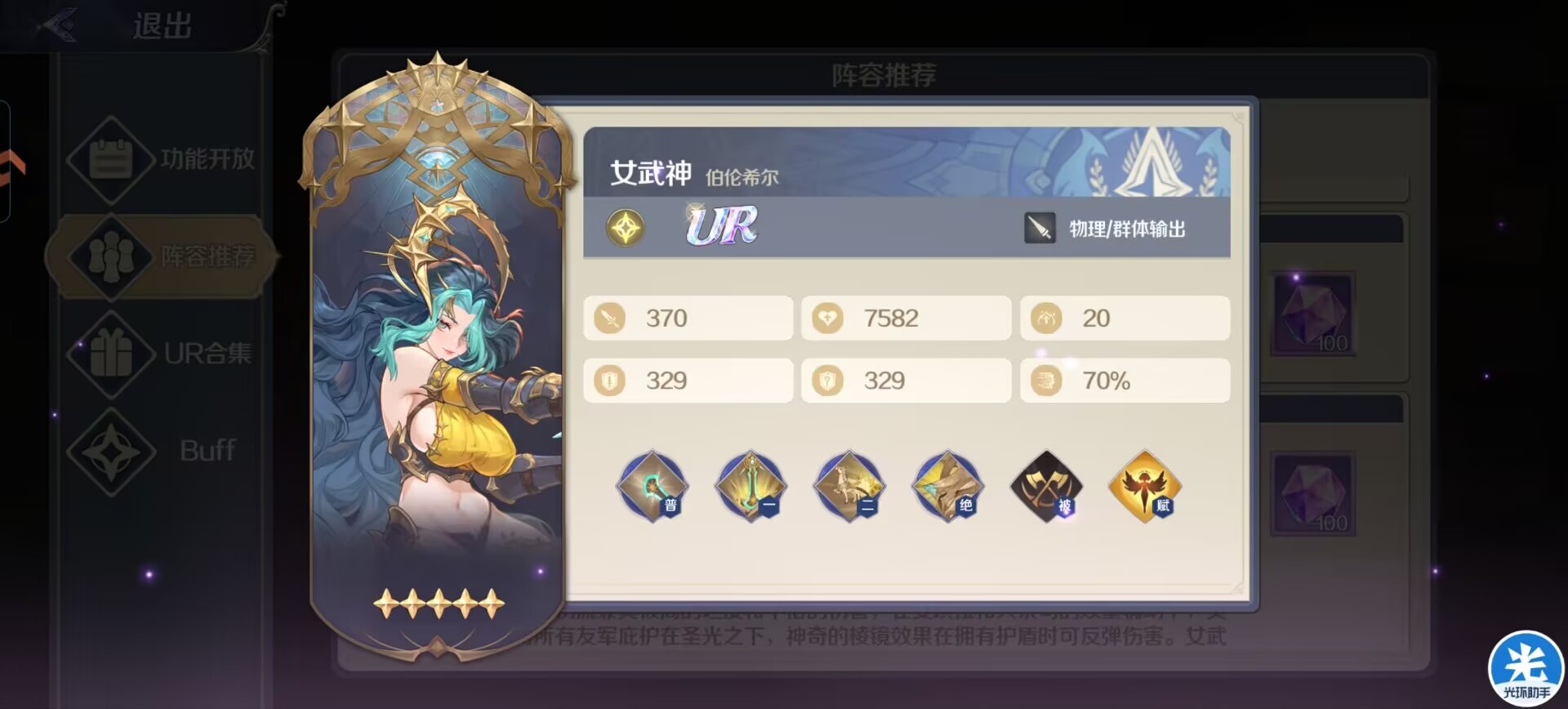④女武神:阵容极致核心输出,可以给敌人挂重伤自身攻击重伤的敌人有额外增伤还有斩杀伤害可以轻松收割残血目标,配合马超、贞德伤害拉满。