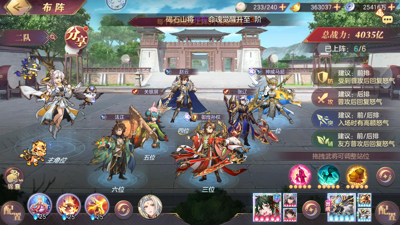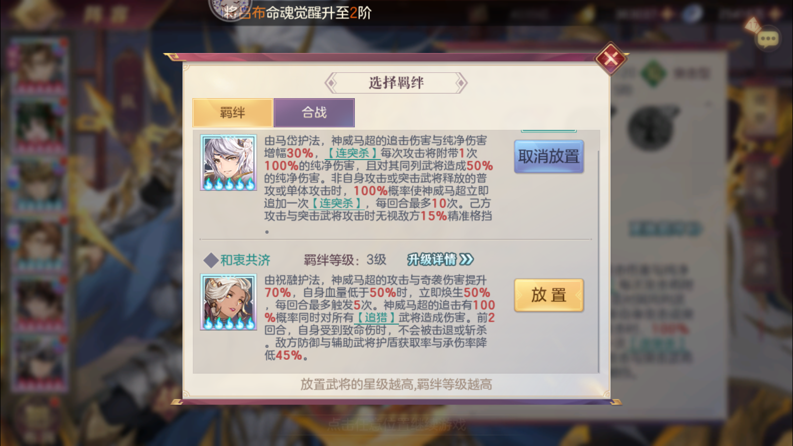 ③目前的两个新命魂孙策和春华对于马超来说都不是强需,当然有5命张春华单挂更好,孙策就不太理想了,命魂张辽搭配马超更加稳定。