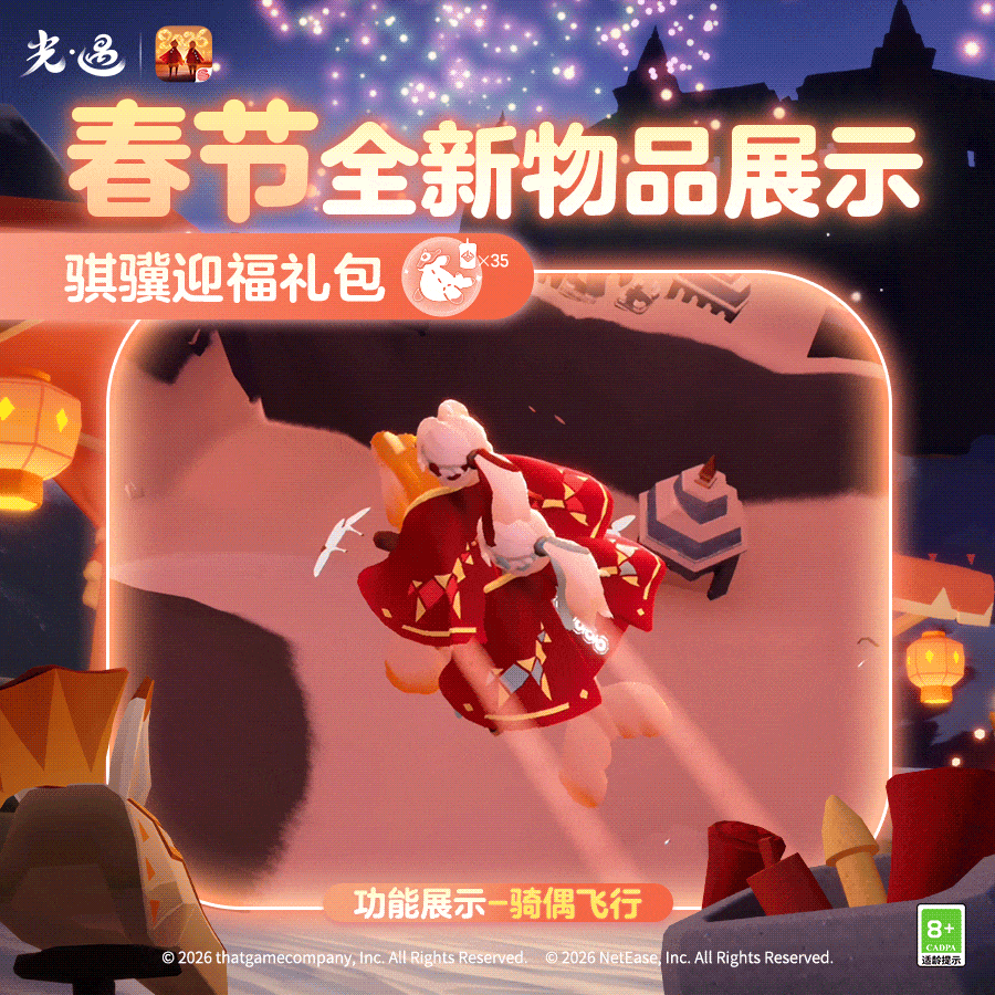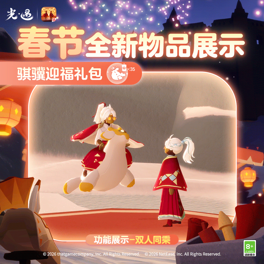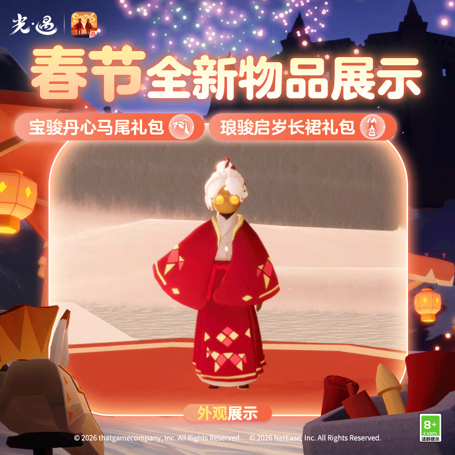 王国特刊丨换上新装,马上过年咯!是泽哦发布于 02-05关注赤金眼镜焕彩万事亨通马面长裙衣袂翩跹风华国风马尾飞扬英姿飒爽骐骥迎福共乘翱翔云端🐴《光·遇》春节活动 2月13日即将开启换上喜庆华美的春节新衣与好友共乘骑偶畅游天空王国一起感受浓浓的年味吧