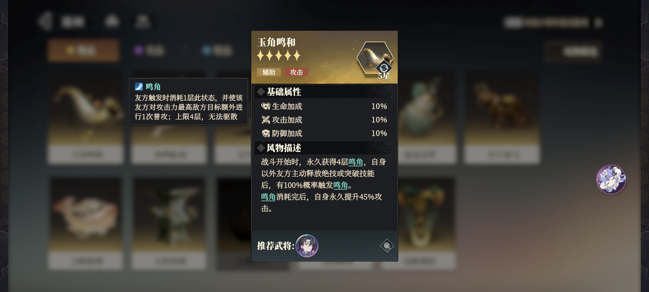 推荐搭配风物-玉角鸣和使用,增加行动次数,使首次【封锢】的触发提前。