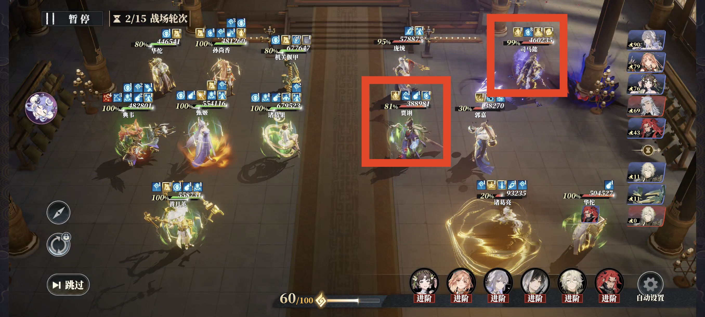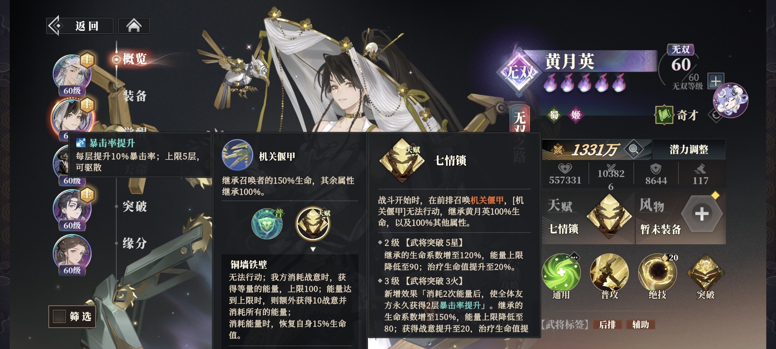 黄月英的【偃甲】有消耗一定战意后返还战意的特殊机制,可以大幅提升我方的战意总量,触发更多助战技。