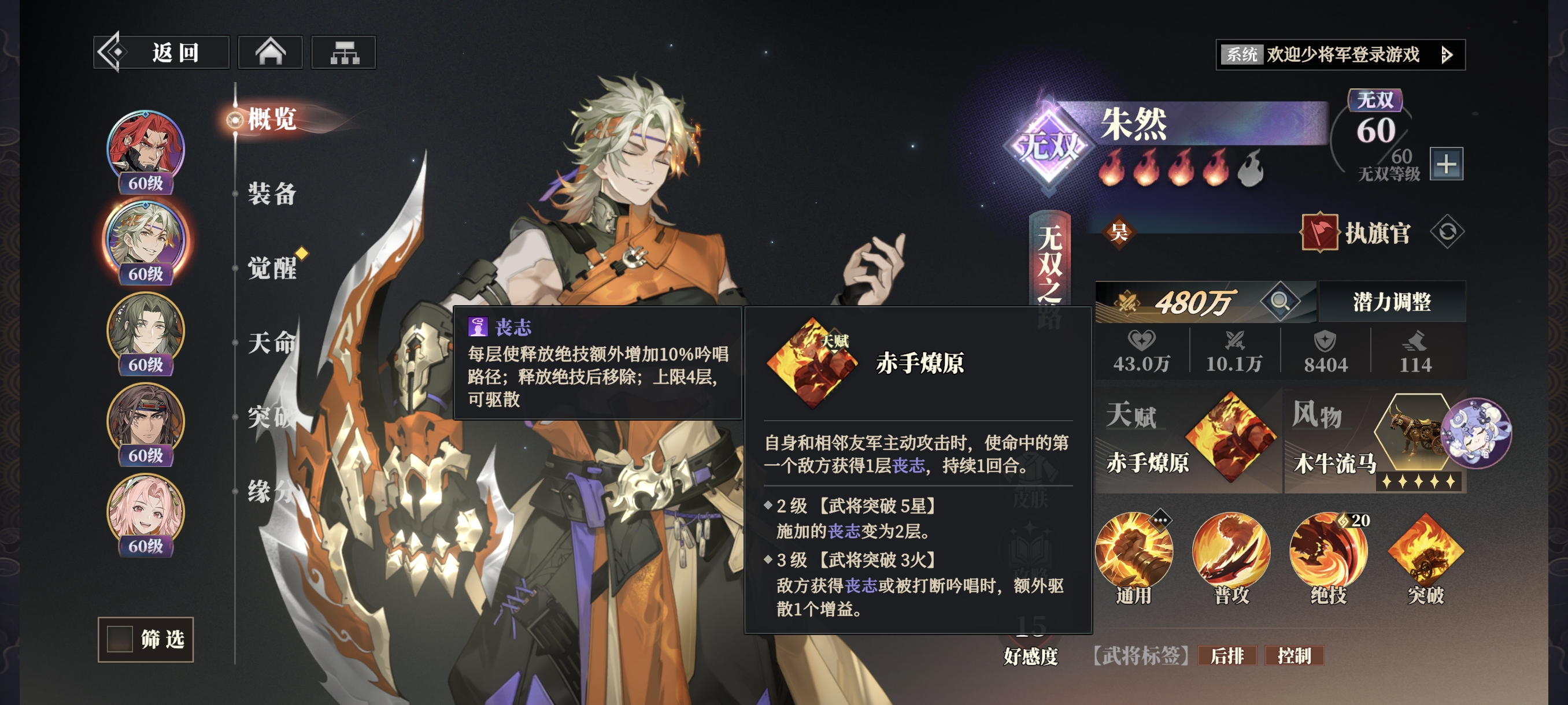 偷取【封锢】目标20%-30%攻击转移给我方攻击最高目标。(提升效果不超过武将攻击的50%)
