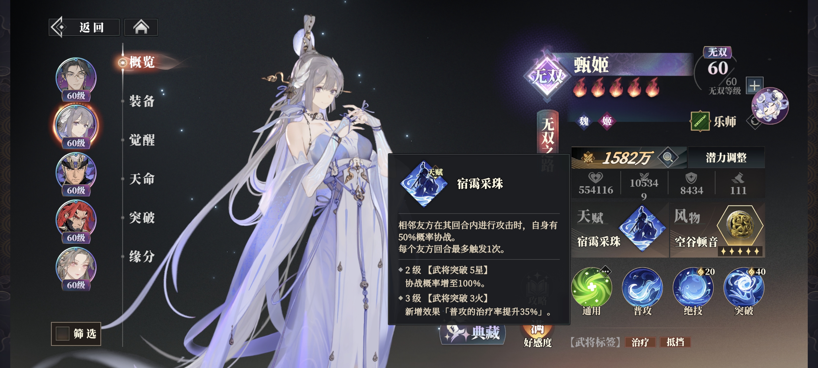 如孙尚香+甄姬阵容,孙尚香携带无间鹿鸣,甄姬携带玉角鸣和,孙尚香施放绝技的行动次数为:绝技+自带2次追击+玉角追击+甄姬追击=5次行动。