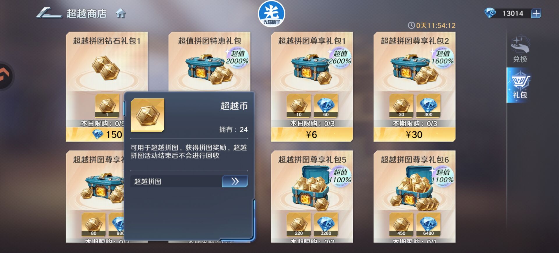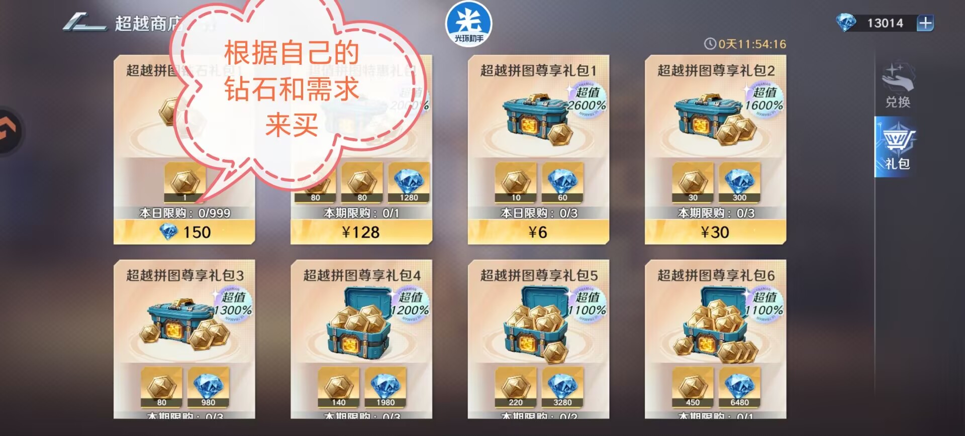 如果是氪佬大佬也可以买下一些氪金礼包来补充超越币。