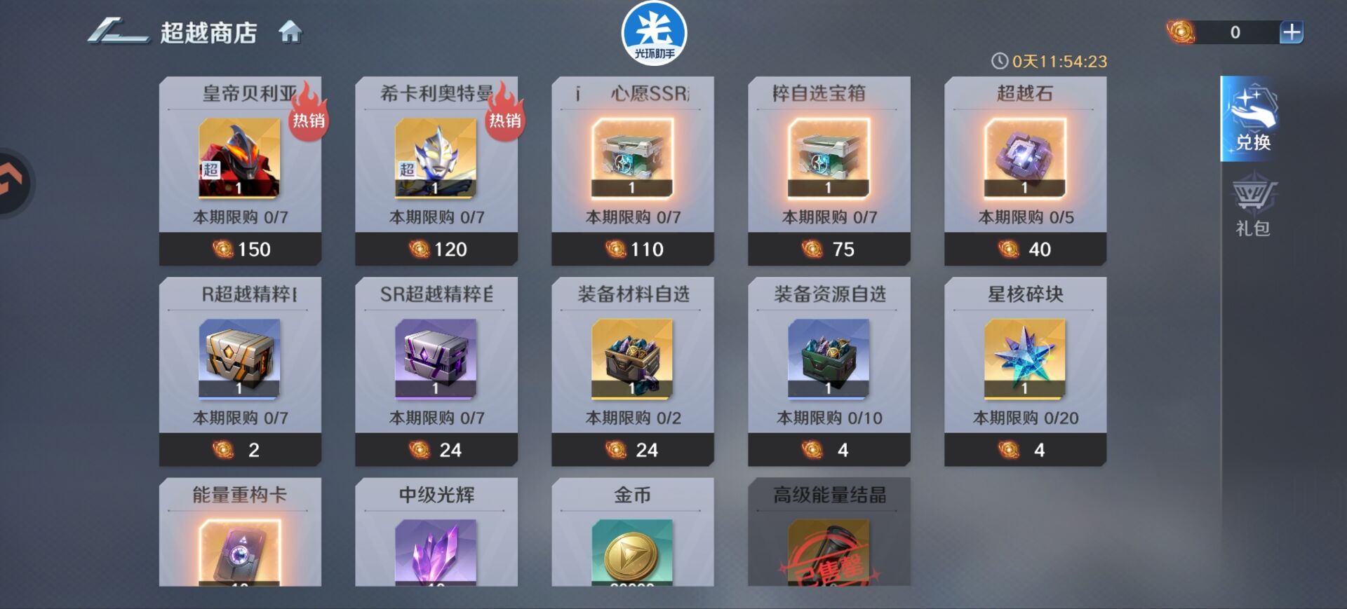 ③该活动非常重要可以兑换:核心角色的超越道具。比如本次可以兑换【皇帝贝利亚】【希卡利】超越道具。