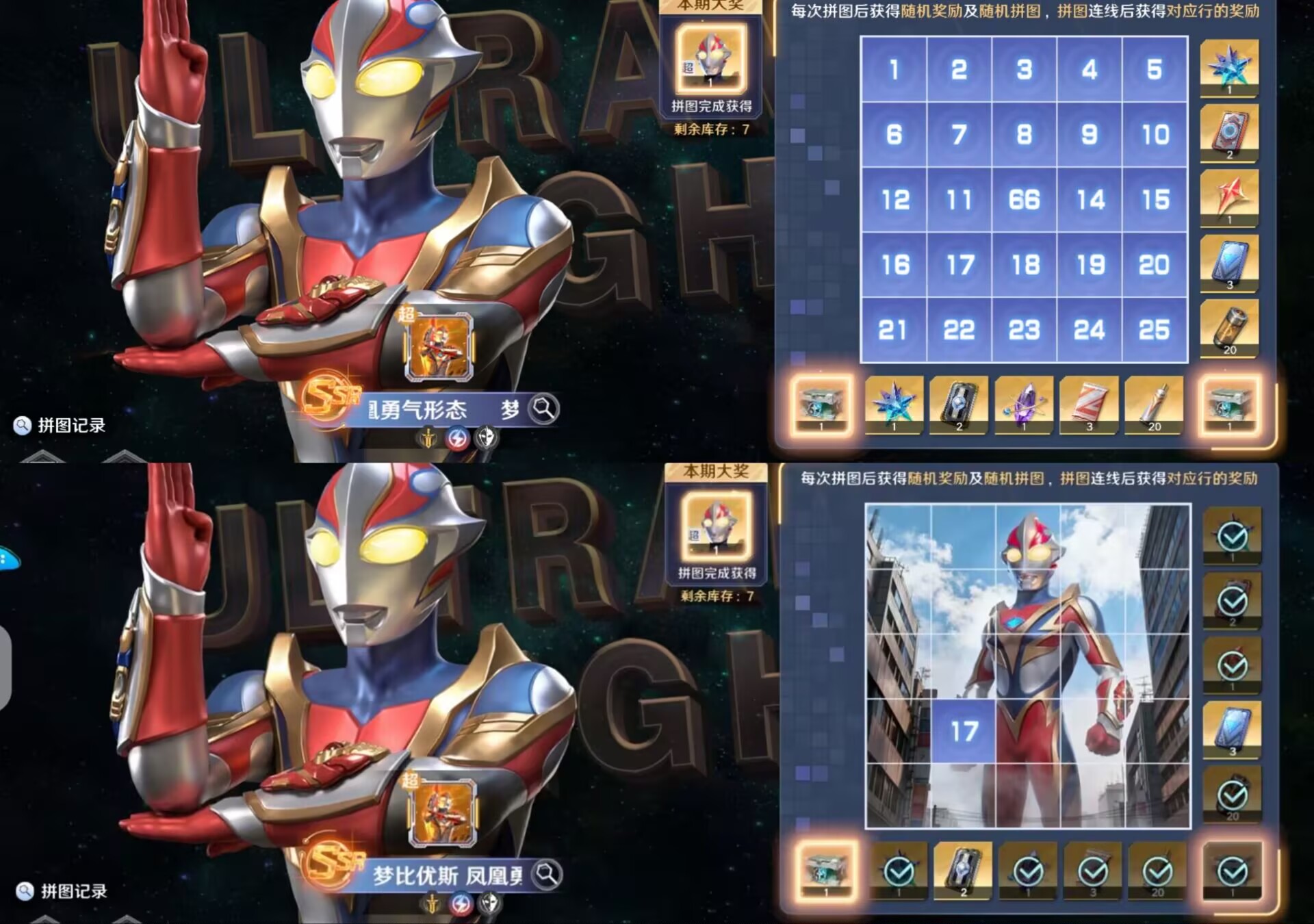 ①本期都有大奖,大奖是根据限定角色来决定的,比如第一期的限定角色是:【凤凰梦】那么这轮的拼图大奖就是【凤凰梦超越精粹】。