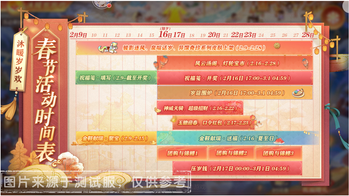 由于春节系列活动较多,因此活动内容将分为2个阶段进行介绍,每个活动时间和公示期时间也将在各活动介绍中分别说明,还请小将军留意。