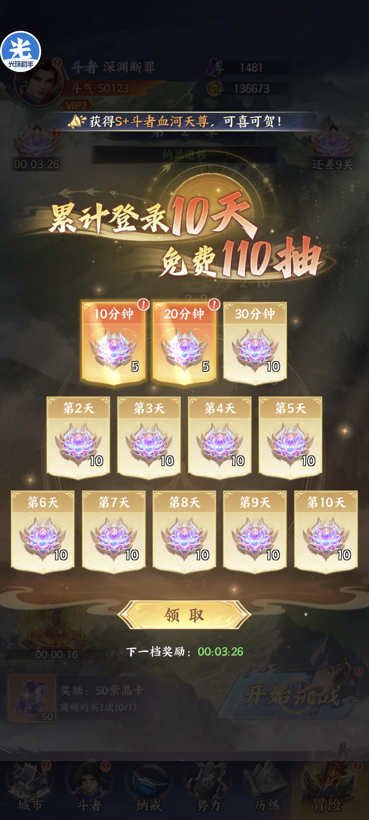 领取主线奖励,凑齐今天的第7-8次十连抽。