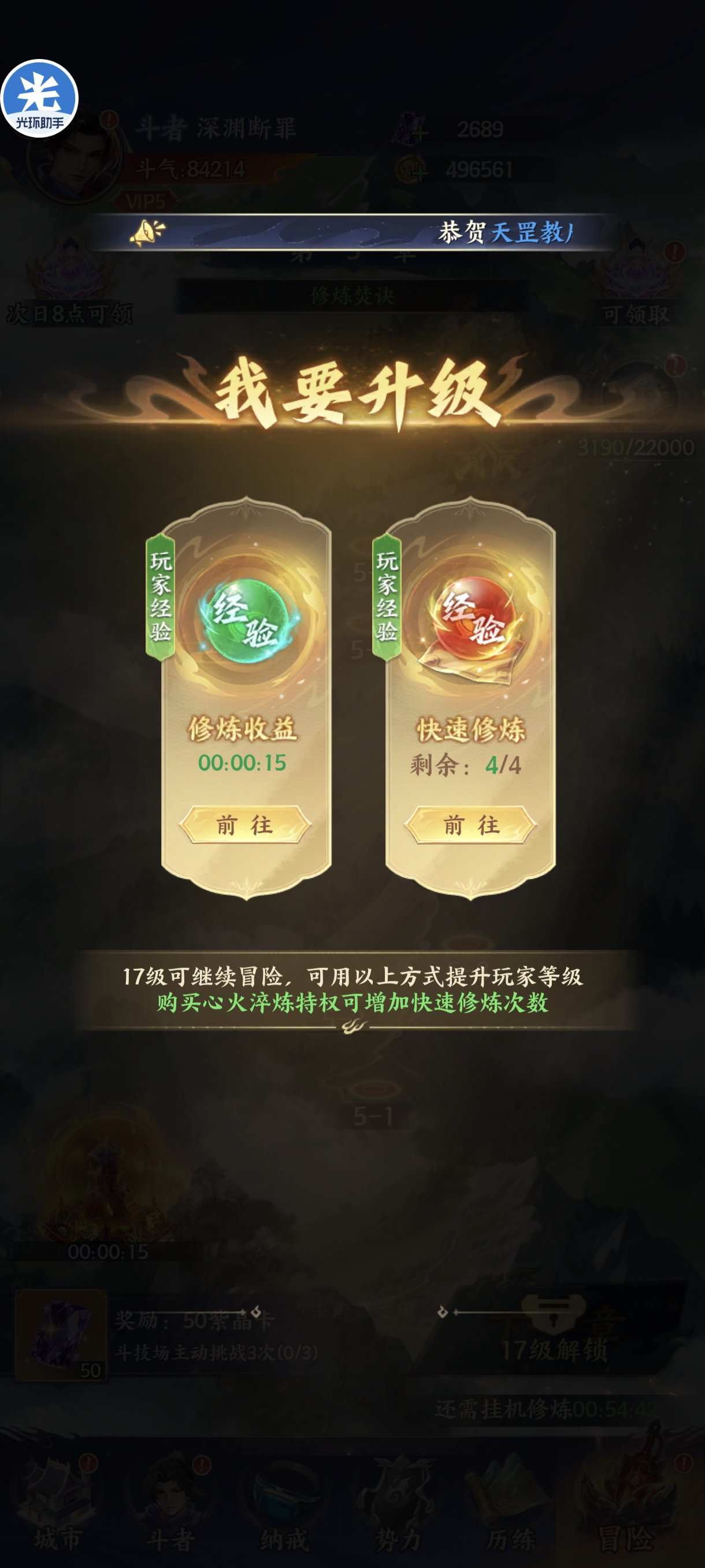 下午领完挂机经验,成功升到27级,主线第十章推完,解锁斗技系统,可在斗技商店购买斗技,优先选择输出向加成的斗技。