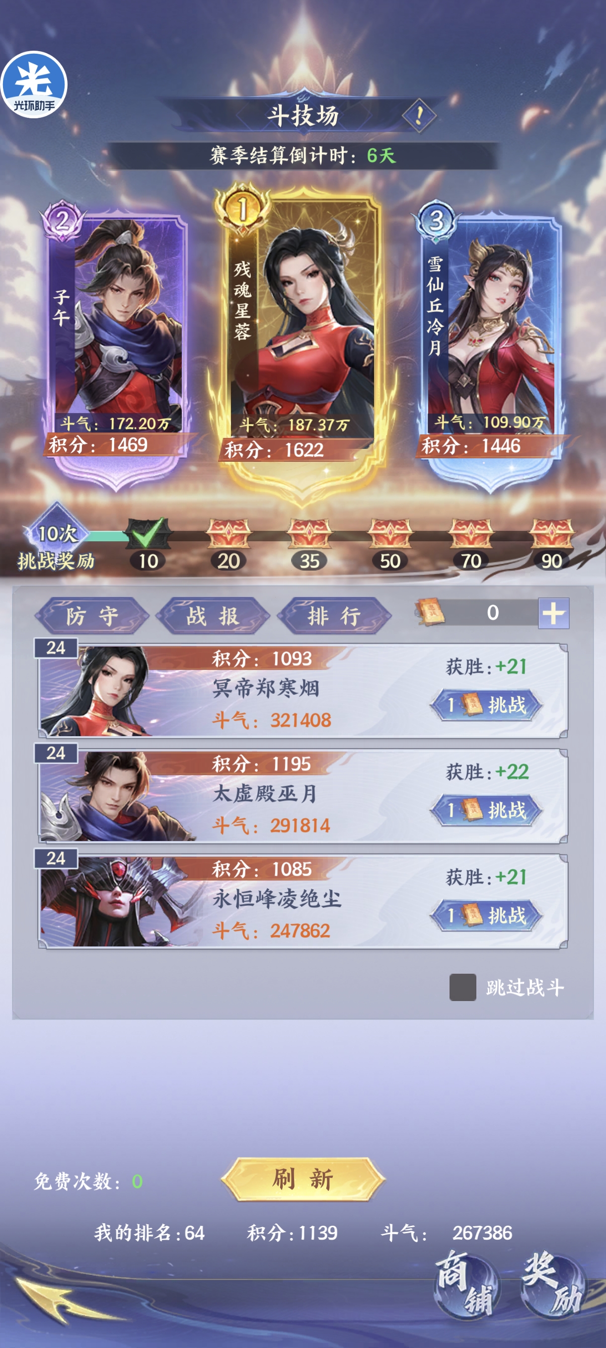 最后把竞技场打到最高排名卡住为止,结束今天的旅程。