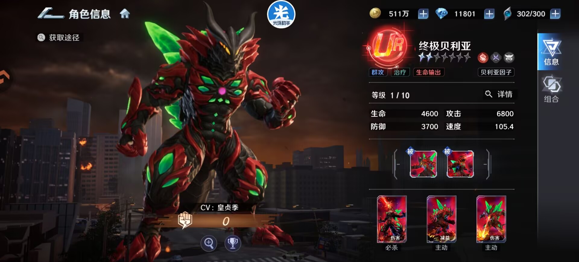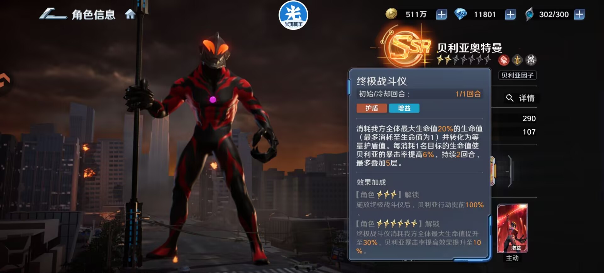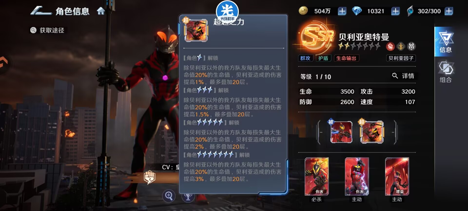 因此贝利亚是比较适合搭配护盾体系的角色。比如【终极赛罗】可以把护盾转换为伤害那么贝利亚就非常适合终极赛罗。