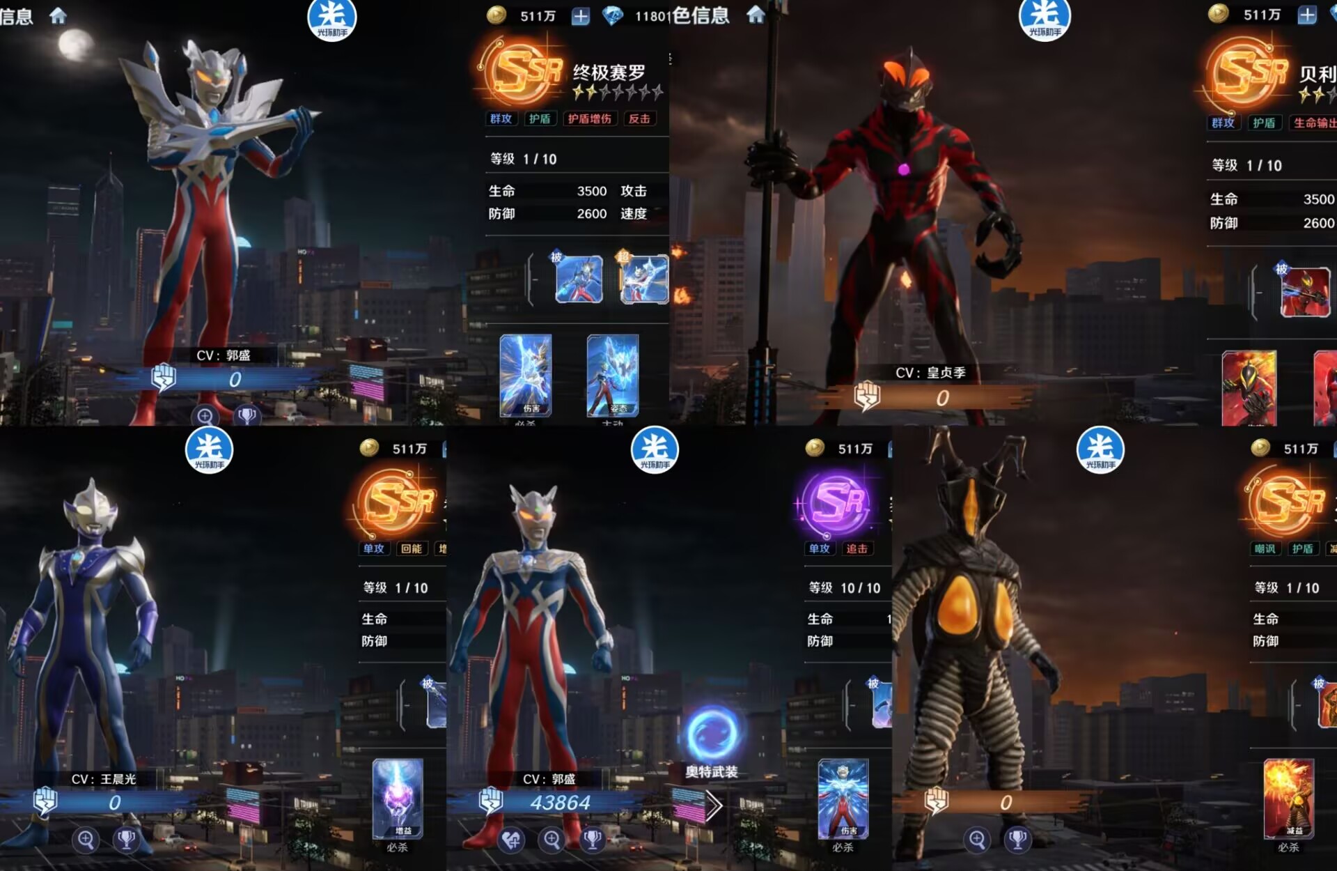 终极赛罗+贝利亚+希卡利+赛罗+芝顿。