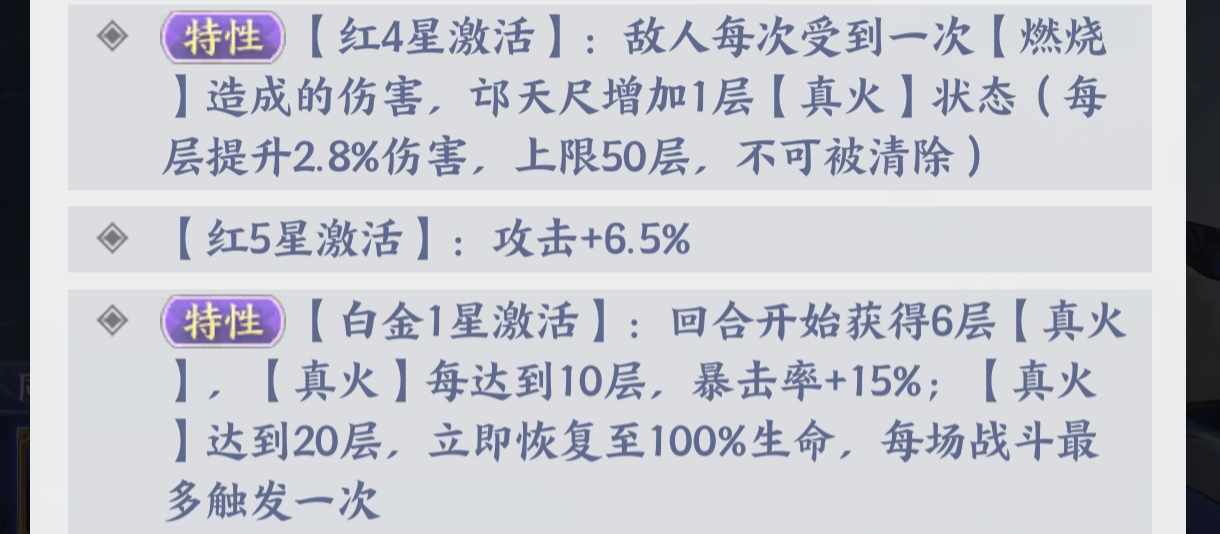 【真火】是邙天尺的核心机制之一,在燃烧队中通过多名英雄附加燃烧,燃烧触发后可以迅速为他叠加真火层数。
