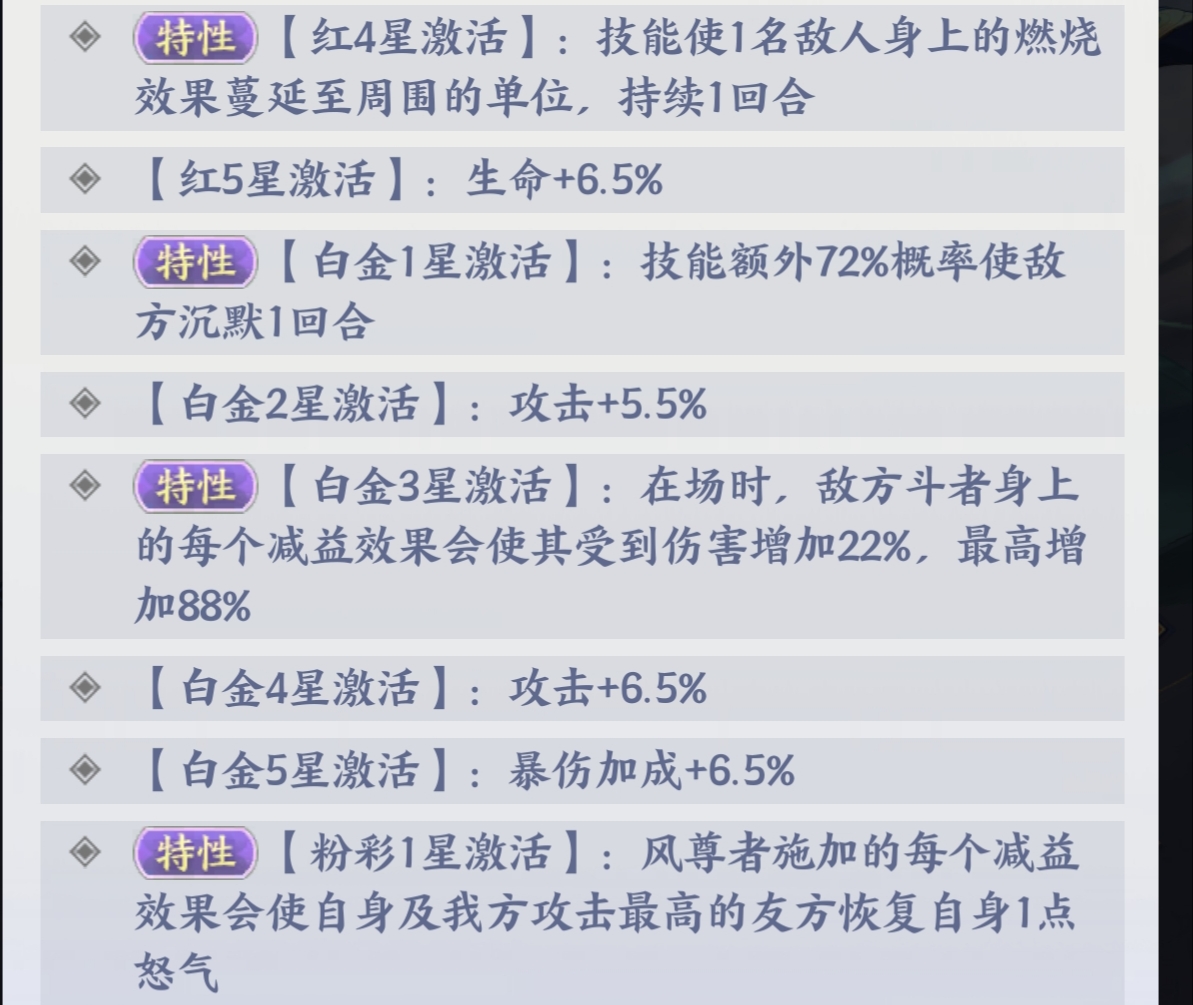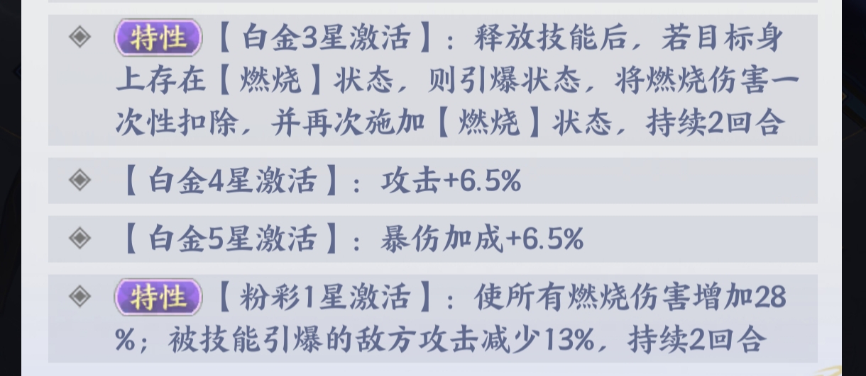并且两人也都能被动增加全队燃烧伤害,算上邙天尺三重加成后共计可增加28%+22%+22%=72%燃烧增伤。