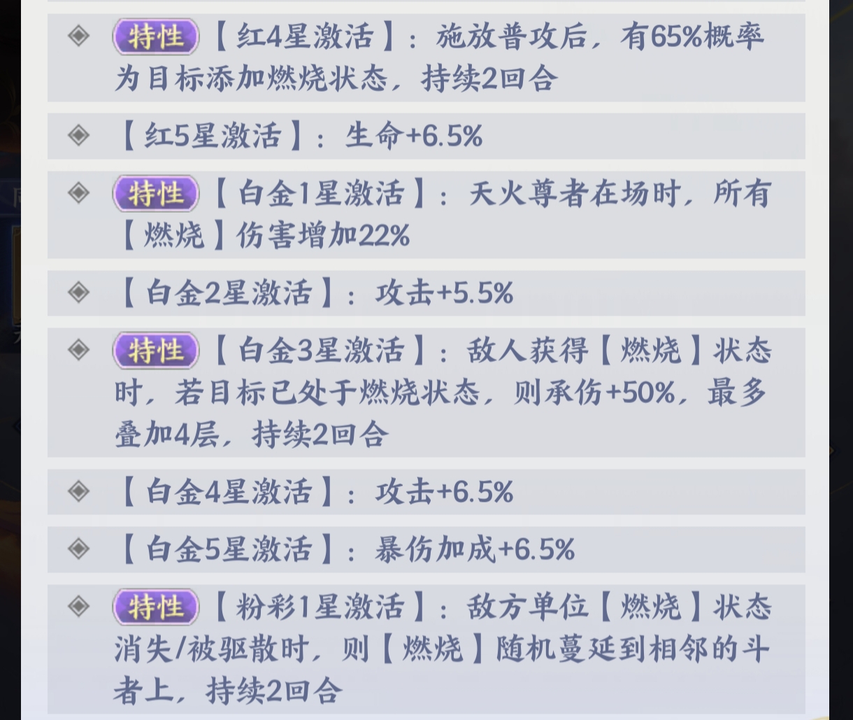最后彩1增加所有燃烧的伤害,对整个体系都有大幅加成。