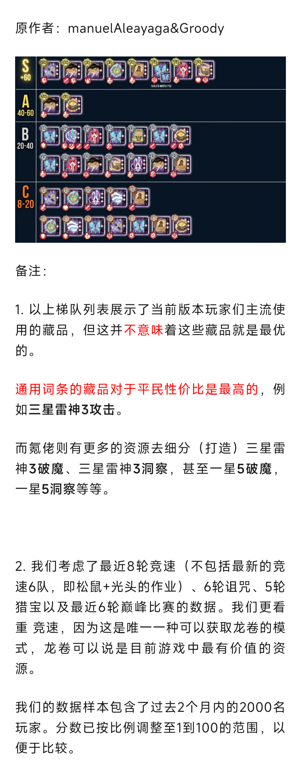剑与远征2026年1月 国际服“藏品”梯队评分一图流