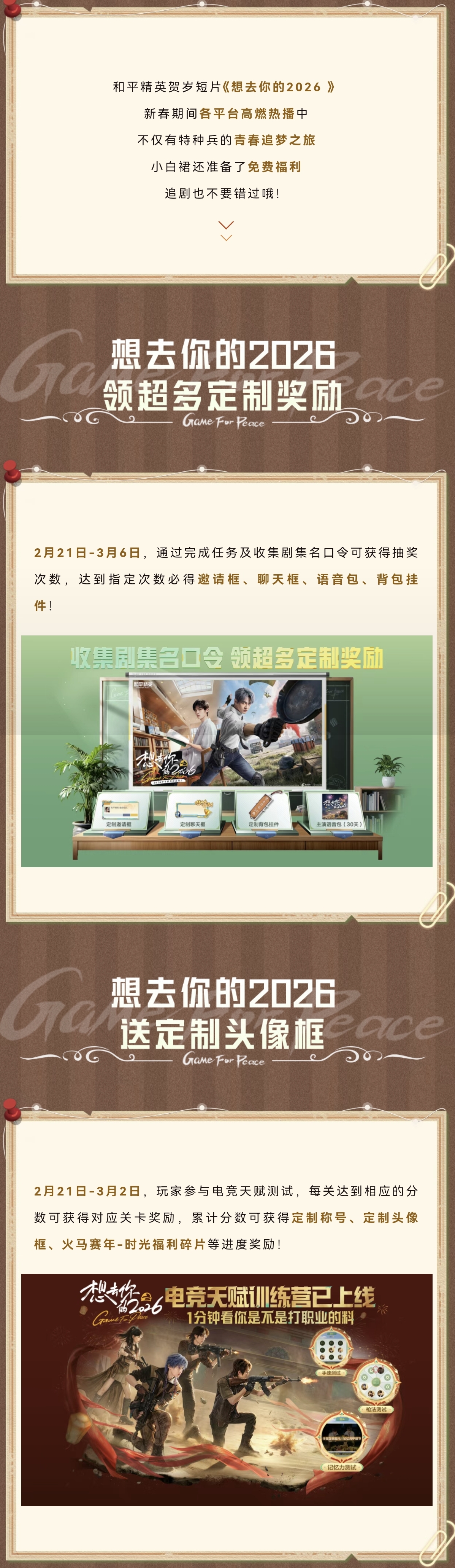 和平精英贺岁短片《想去你的2026》送定制邀请框、聊天框等好礼!