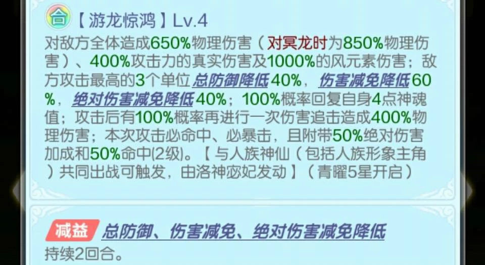 三太子的怒气辅助回复效果可以使得本族幻彩三全程大招不断,而青曜神仙是神魂合击体系,要怒气没用,现阶段自身神魂回复能力极其有限,没办法做到全程大招,而且零星本身攻击系数不高,所以打龙只需要主幻彩三即可