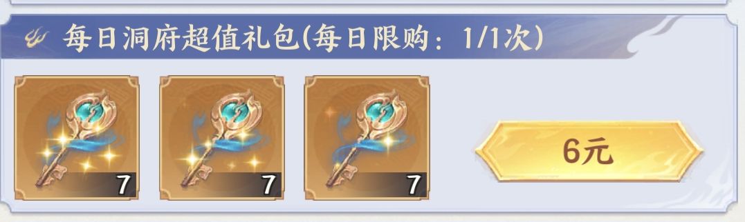 ①洞府礼包一共可以白嫖7把。