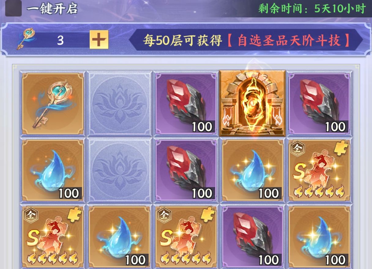 6:【50层奖励】优先选择:圣品天阶斗技(活动最核心的奖励)