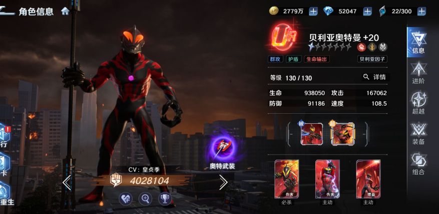 解析:以【贝利亚】或者是【终极赛罗】为主c,这两个练度拉起来伤害不输给闪耀迪迦。